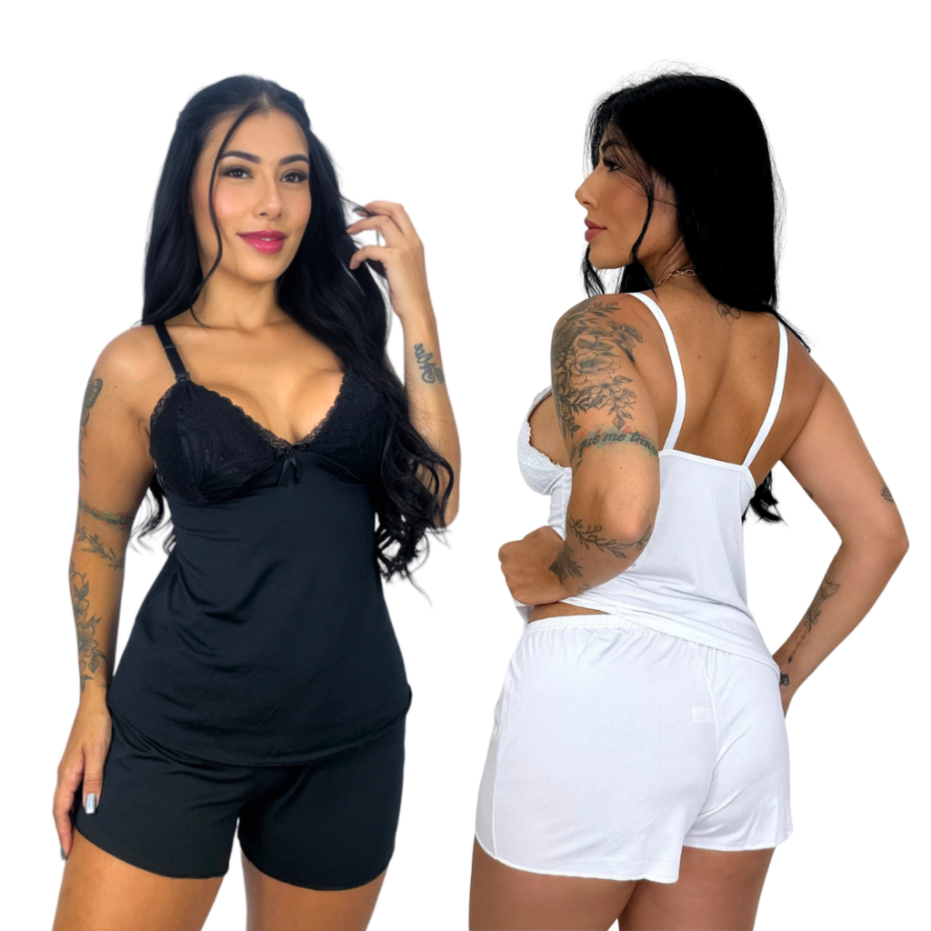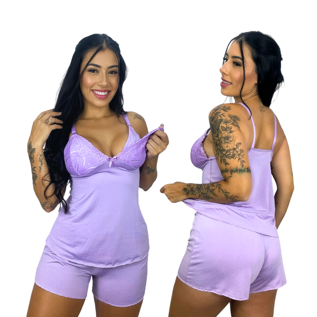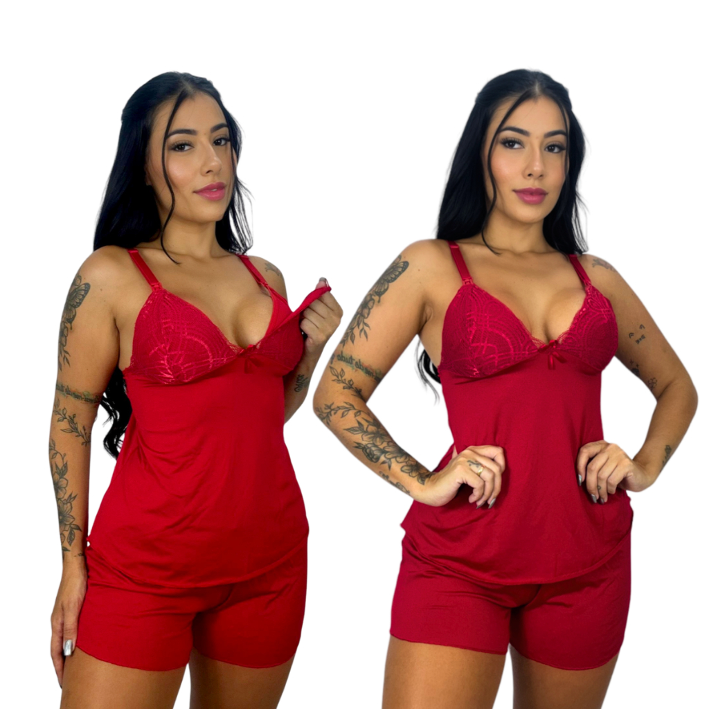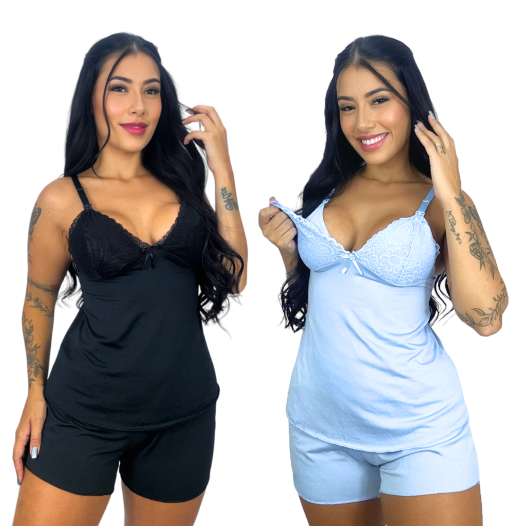 Kit 2 Baby Doll Amamentação para Maternidade Short Doll Gestante Pós Parto Abre Fácil