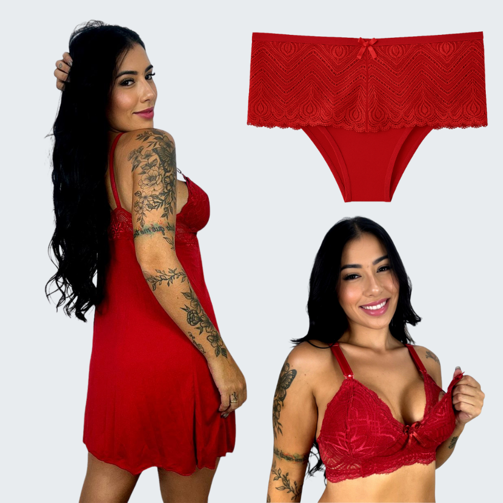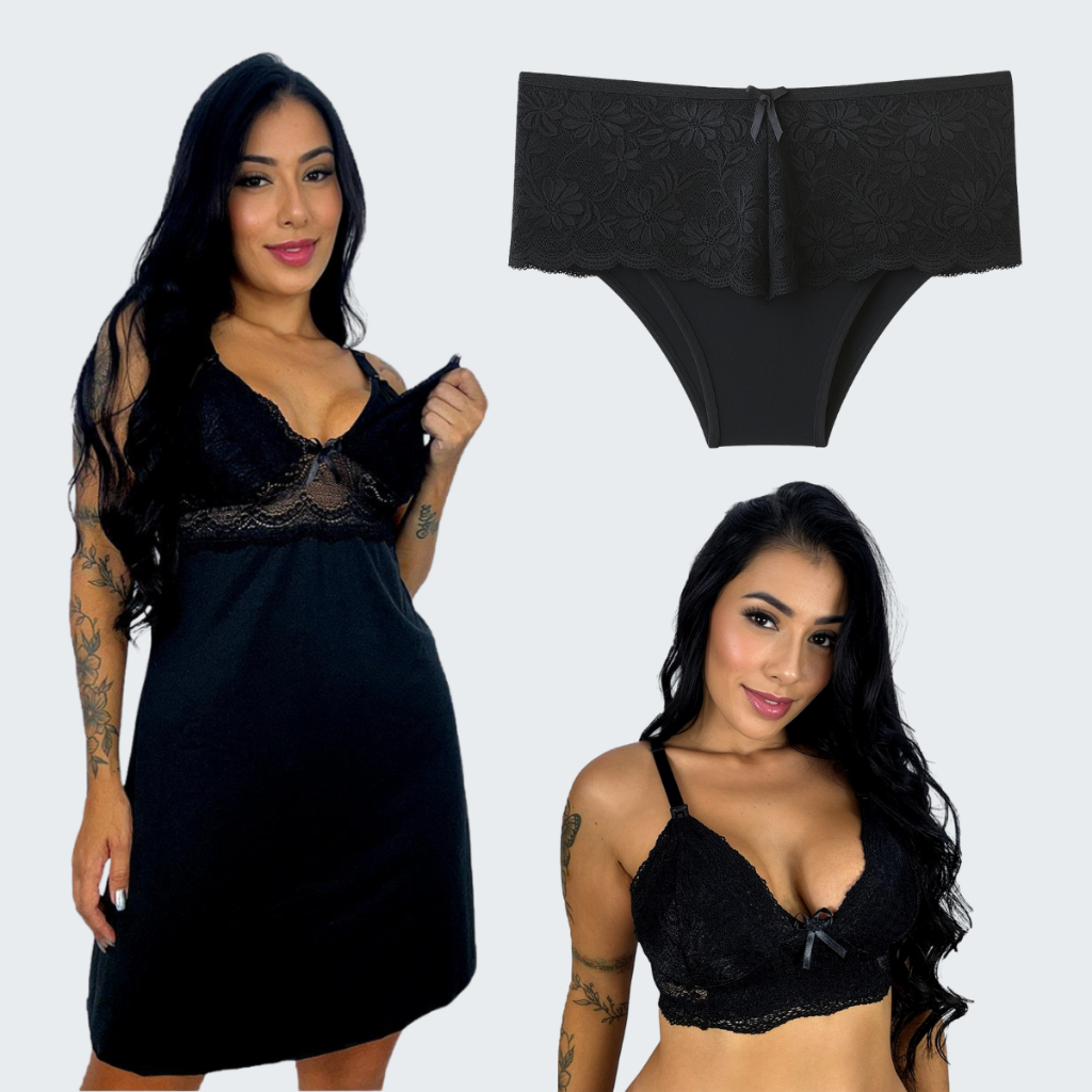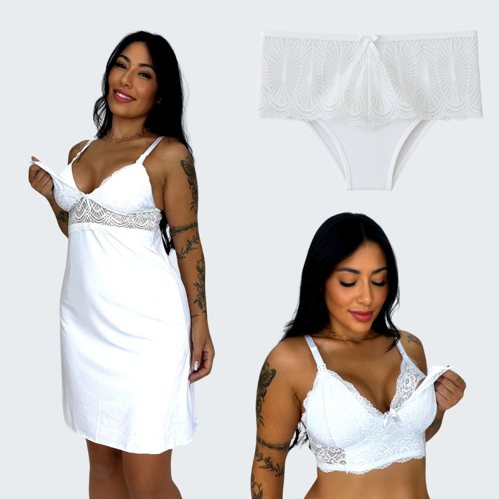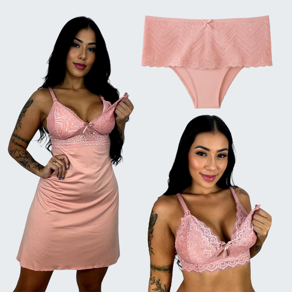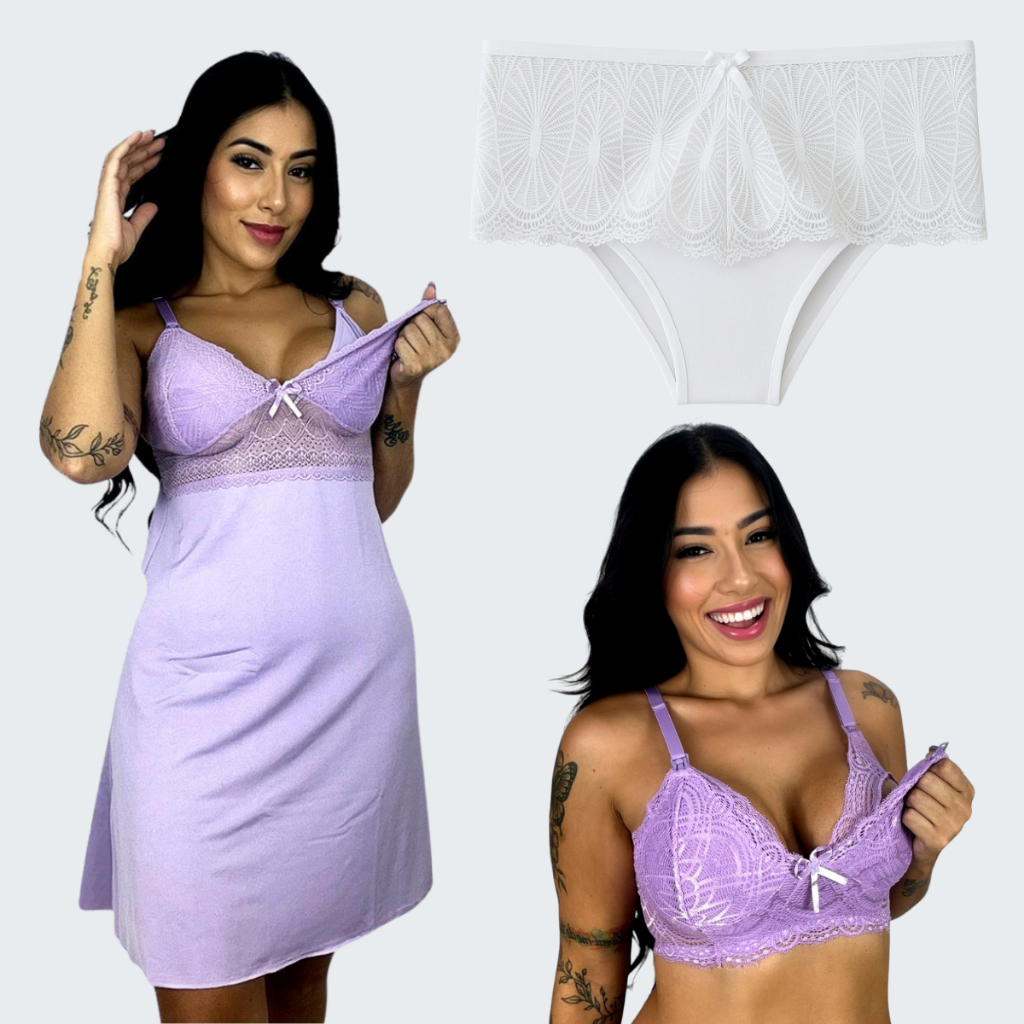 Kit Maternidade 1 Sutiã Amamentação Sem Bojo 1 Camisola Amamentação 1 Calcinha Pós Parto Gestante