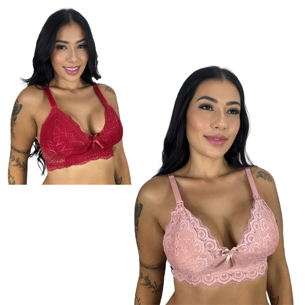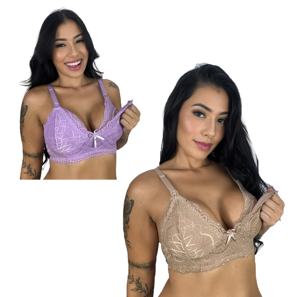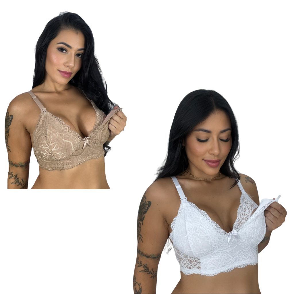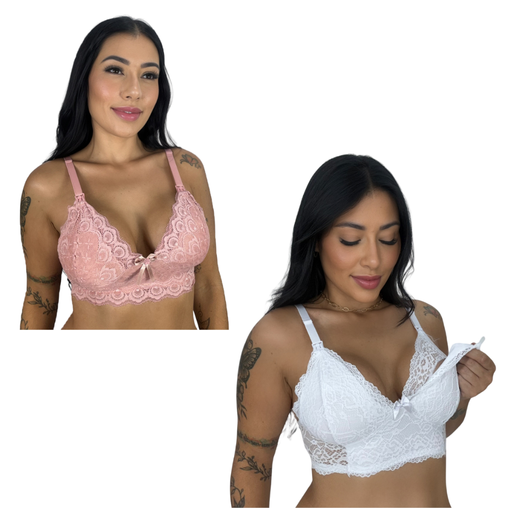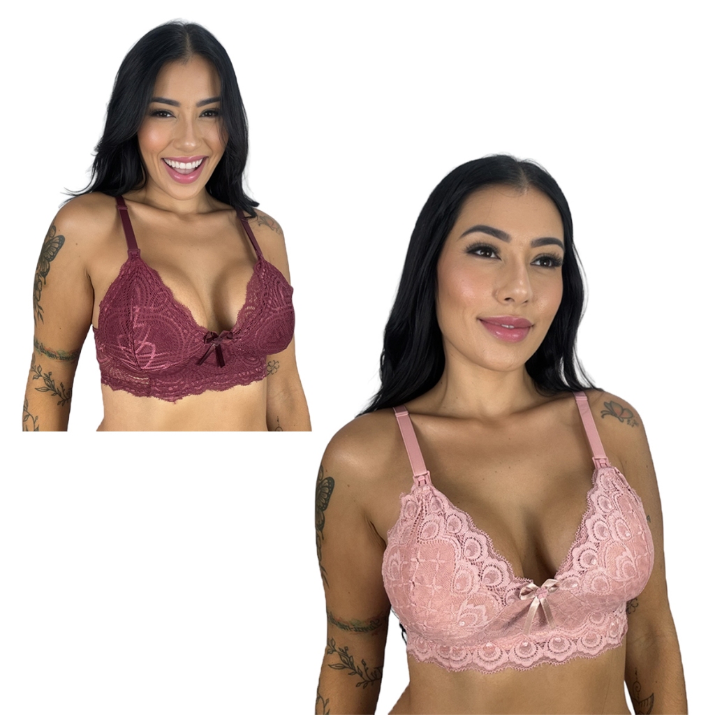Kit 2 Sutiã de Amamentação Renda Sem Bojo Reforçado Pós Parto