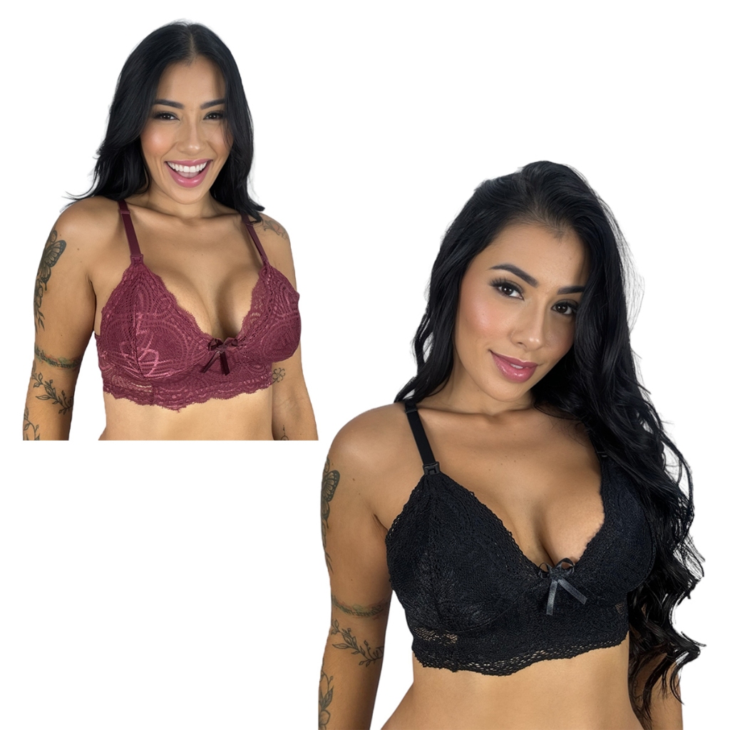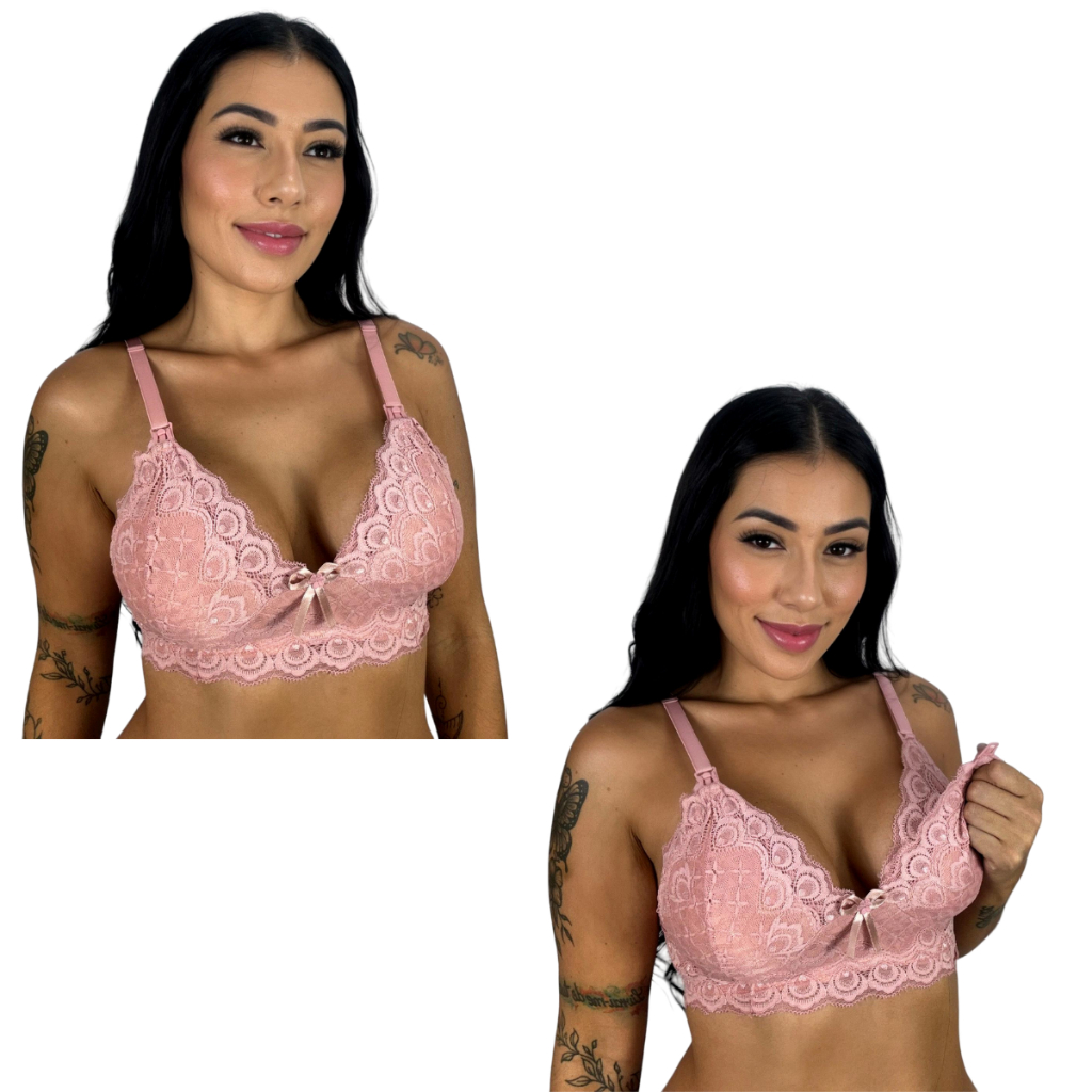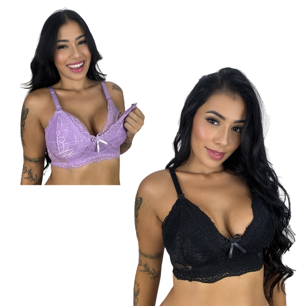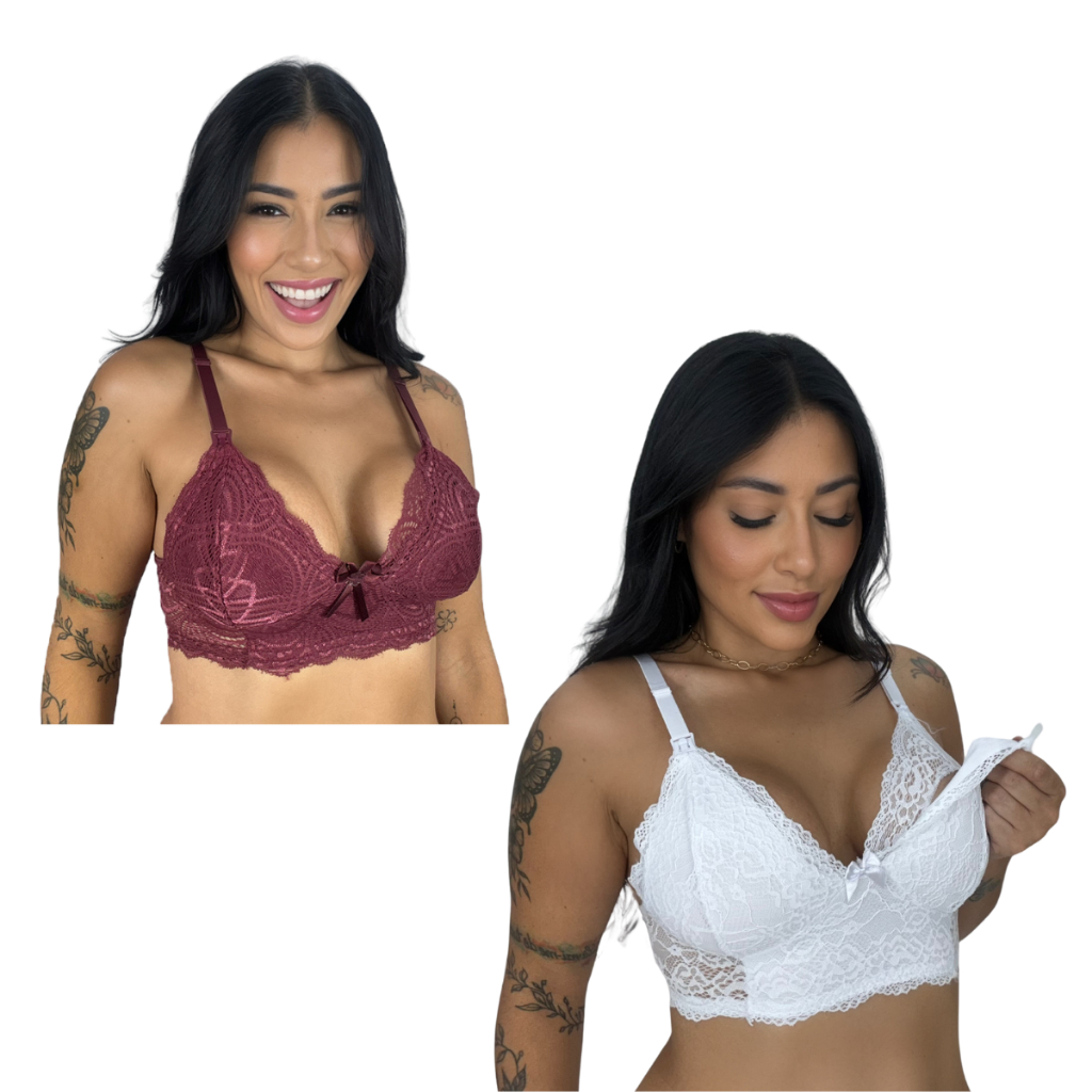 Kit 2 Sutiã de Amamentação Renda Sem Bojo Reforçado Pós Parto