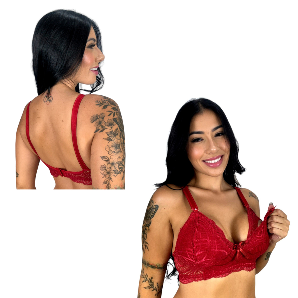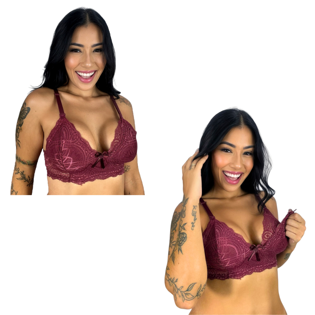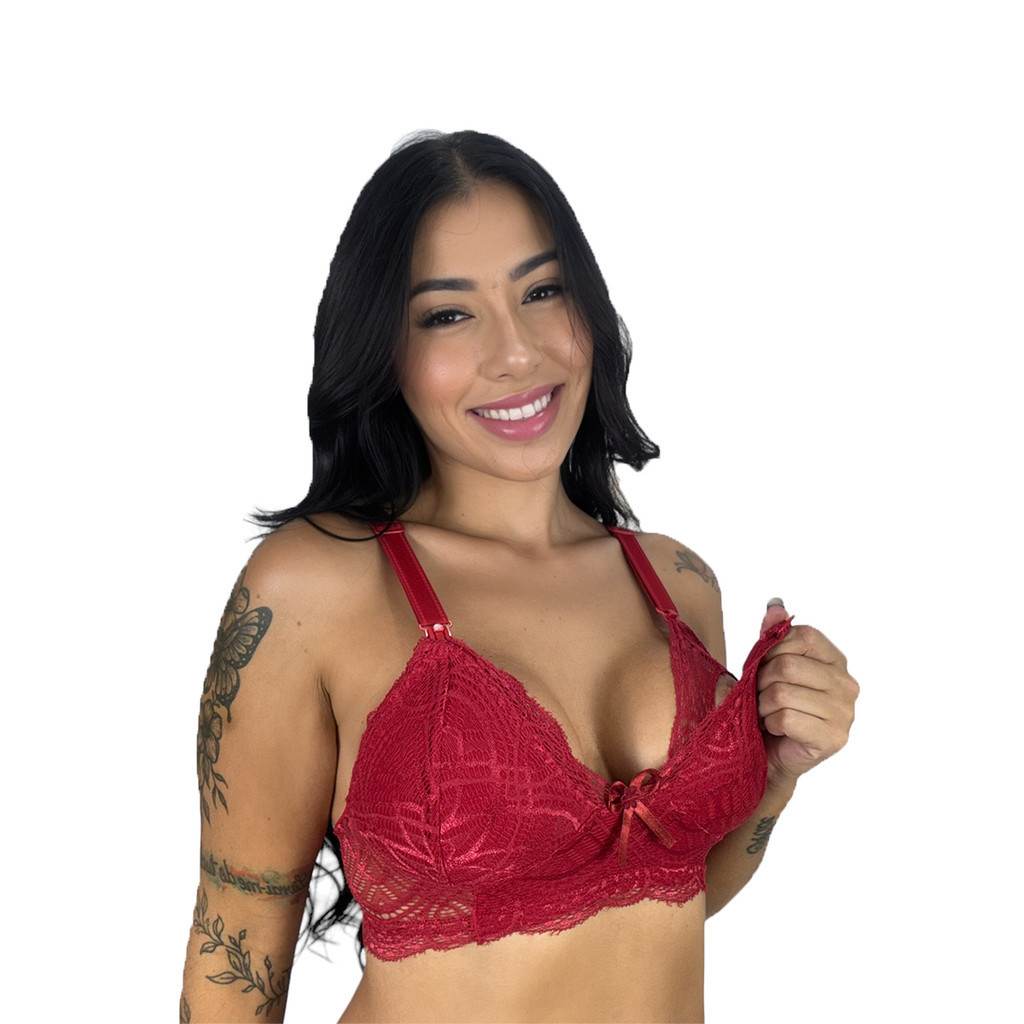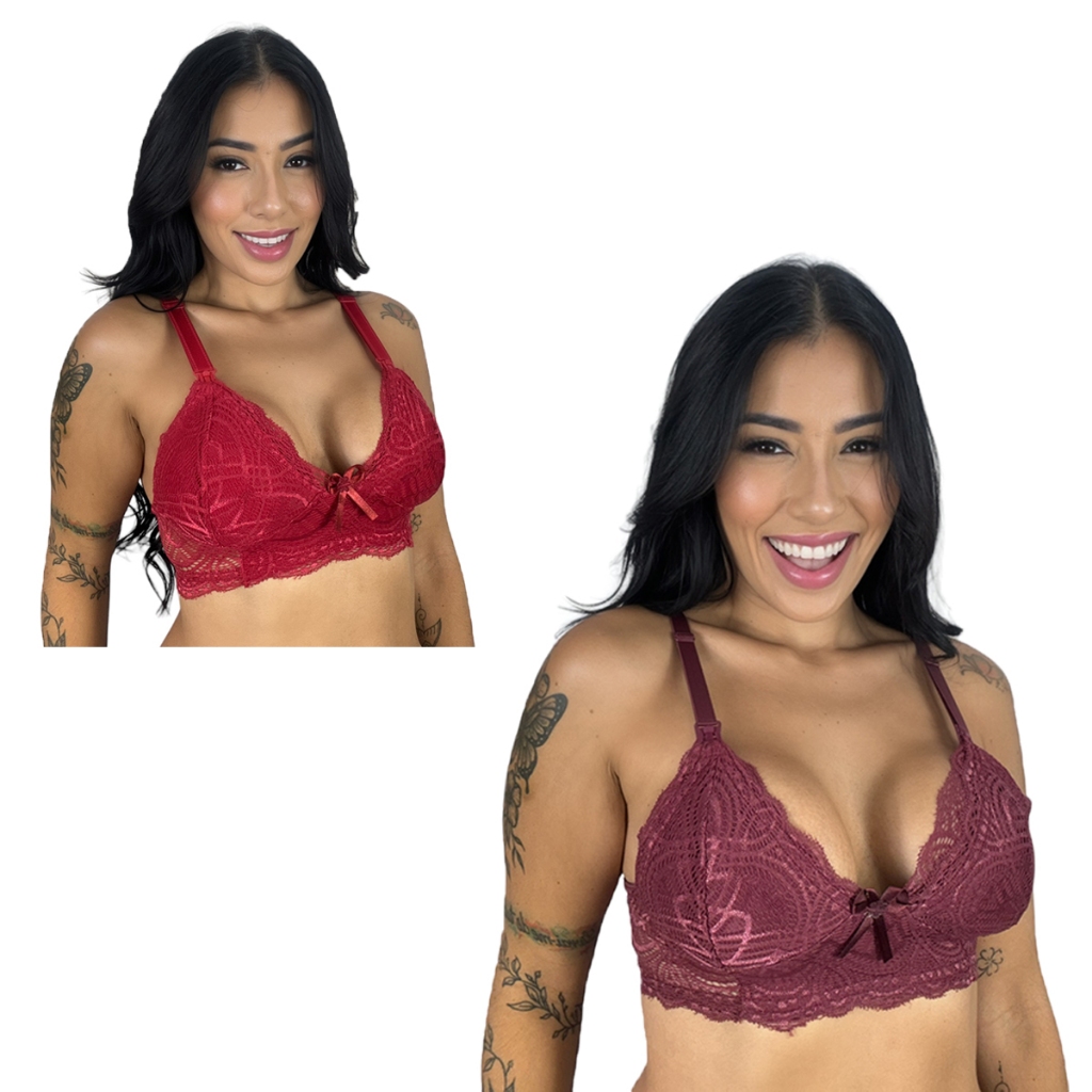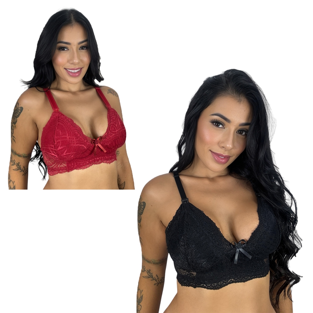 Kit 2 Sutiã de Amamentação Renda Sem Bojo Reforçado Pós Parto