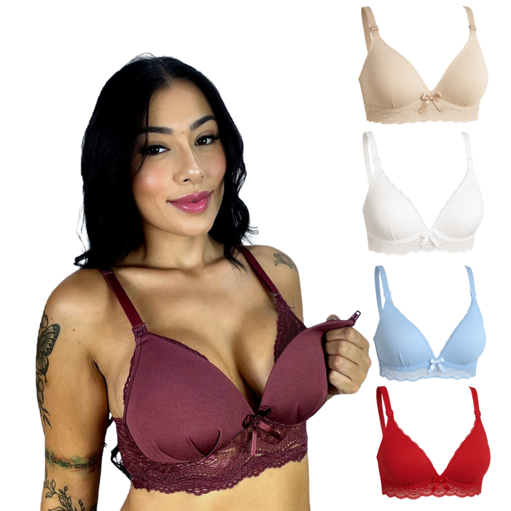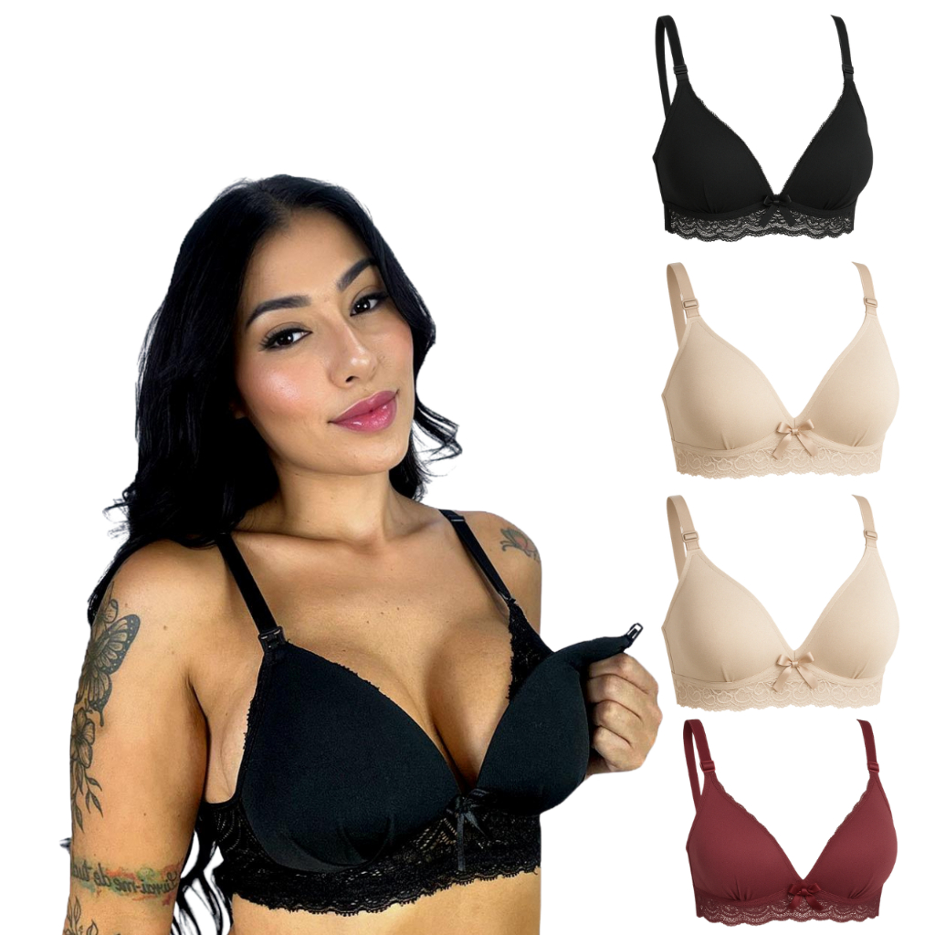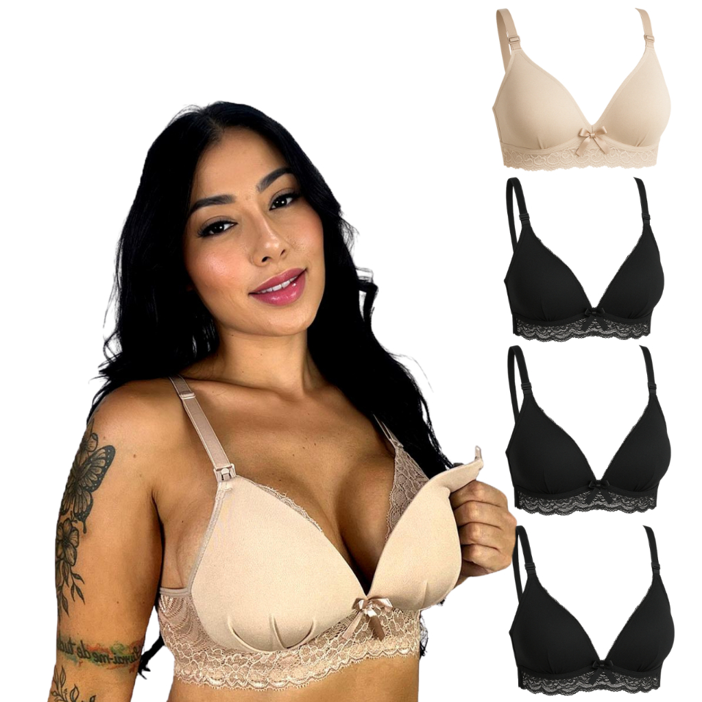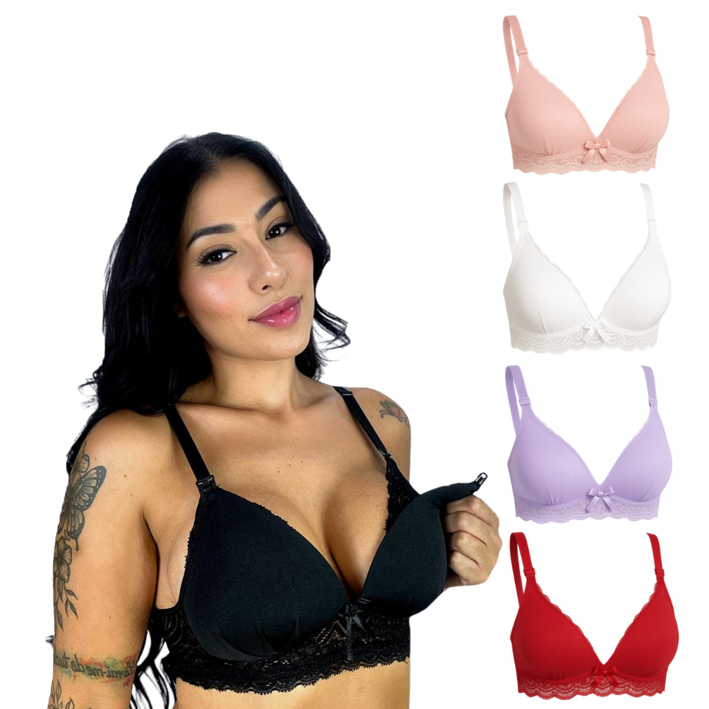 Kit 5 Sutiã de Amamentação com Bojo Soft e Renda para Gestante Maternidade e Pós Parto