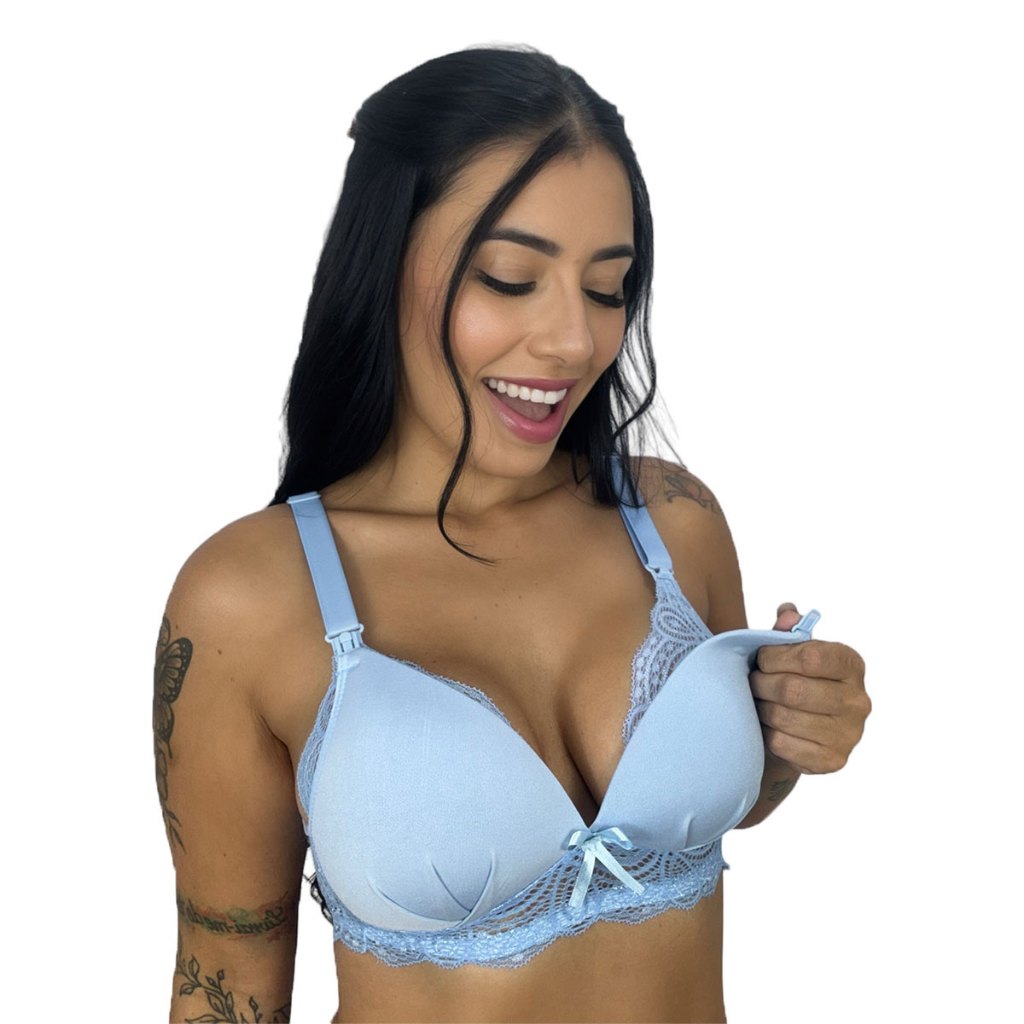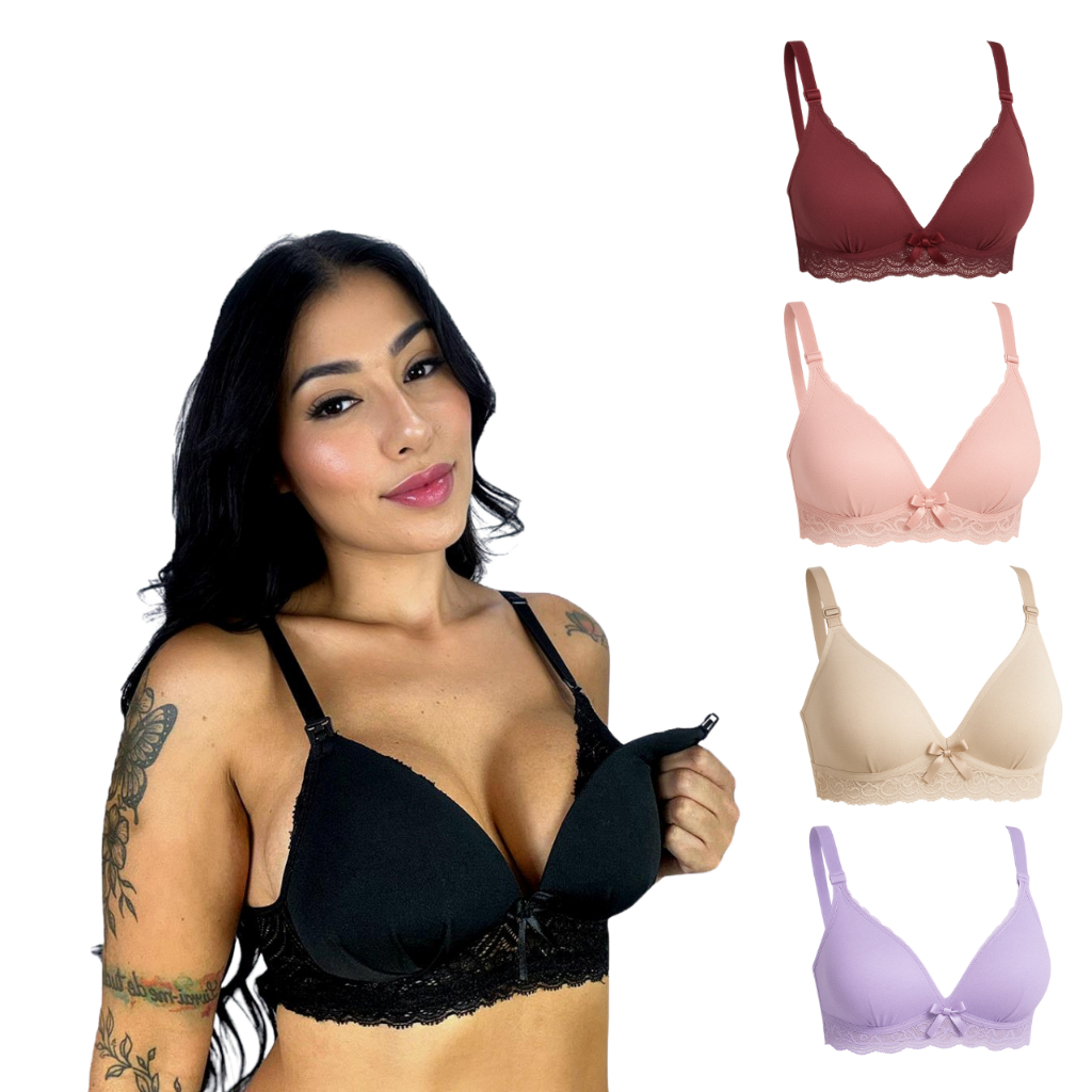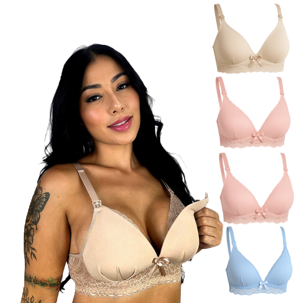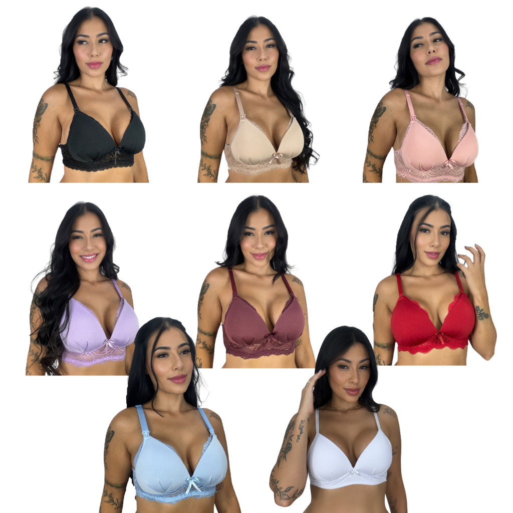 Kit 5 Sutiã de Amamentação com Bojo Soft e Renda para Gestante Maternidade e Pós Parto