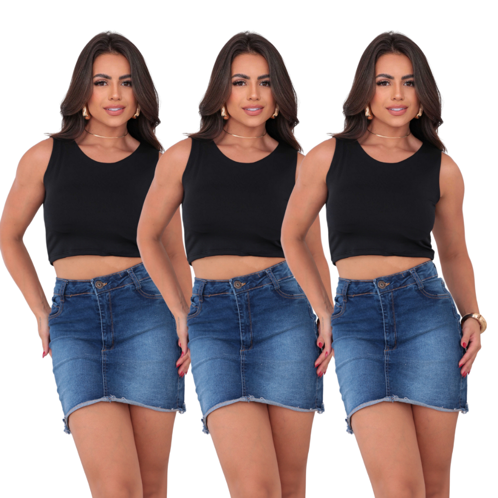 Kit 3 Regatinhas Femininas Cropped Verão com Forro Duplo – Blusinha Básica
