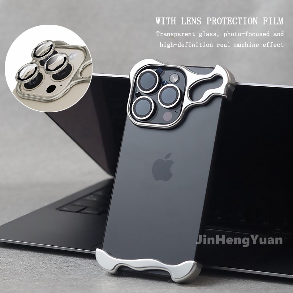 Capa de Luxo Metálica Compatível com iPhone 13 14 15 Pro Max Design Alienigena Esculpido Elegante e Sofisticado