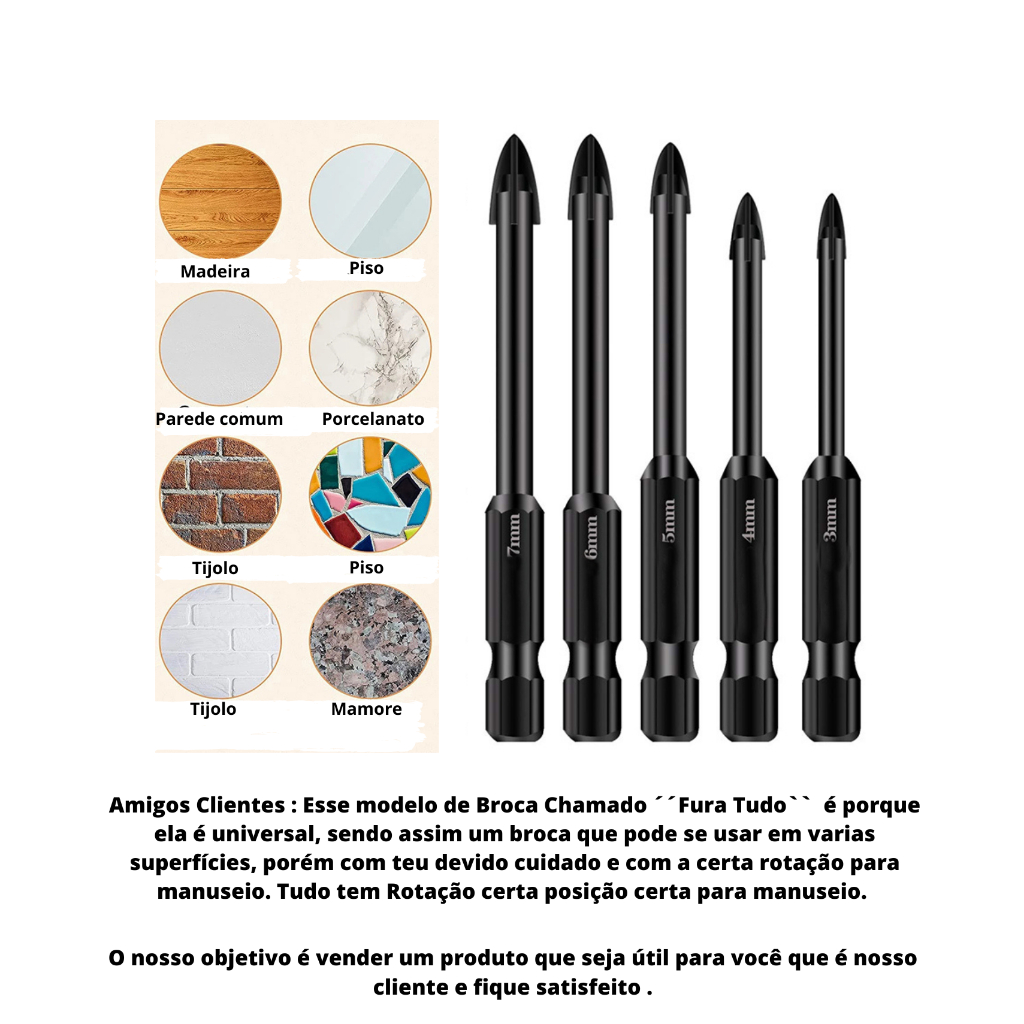 Kit Broca Indestrutível Titanio Universal Fura Tudo 5pcs