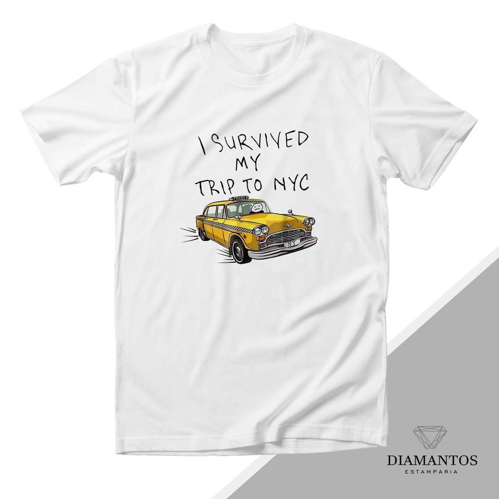 Camiseta Taxi I Survived my trip to NYC Tom Holland unissex e baby look MALHA COM ELASTANO