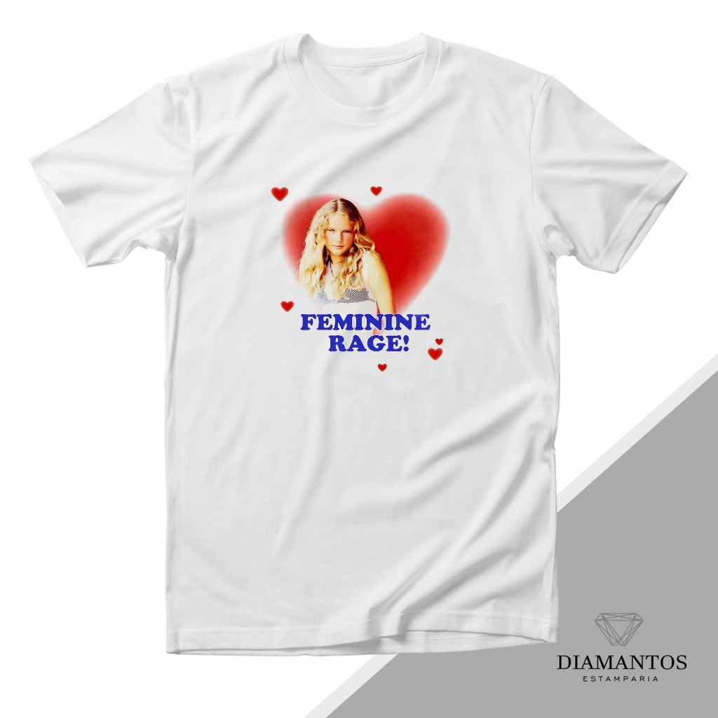 Camiseta Taylor Swift Feminine Rage Taylor Rage Sabrina Carpenter blusa baby look MALHA ELASTANO