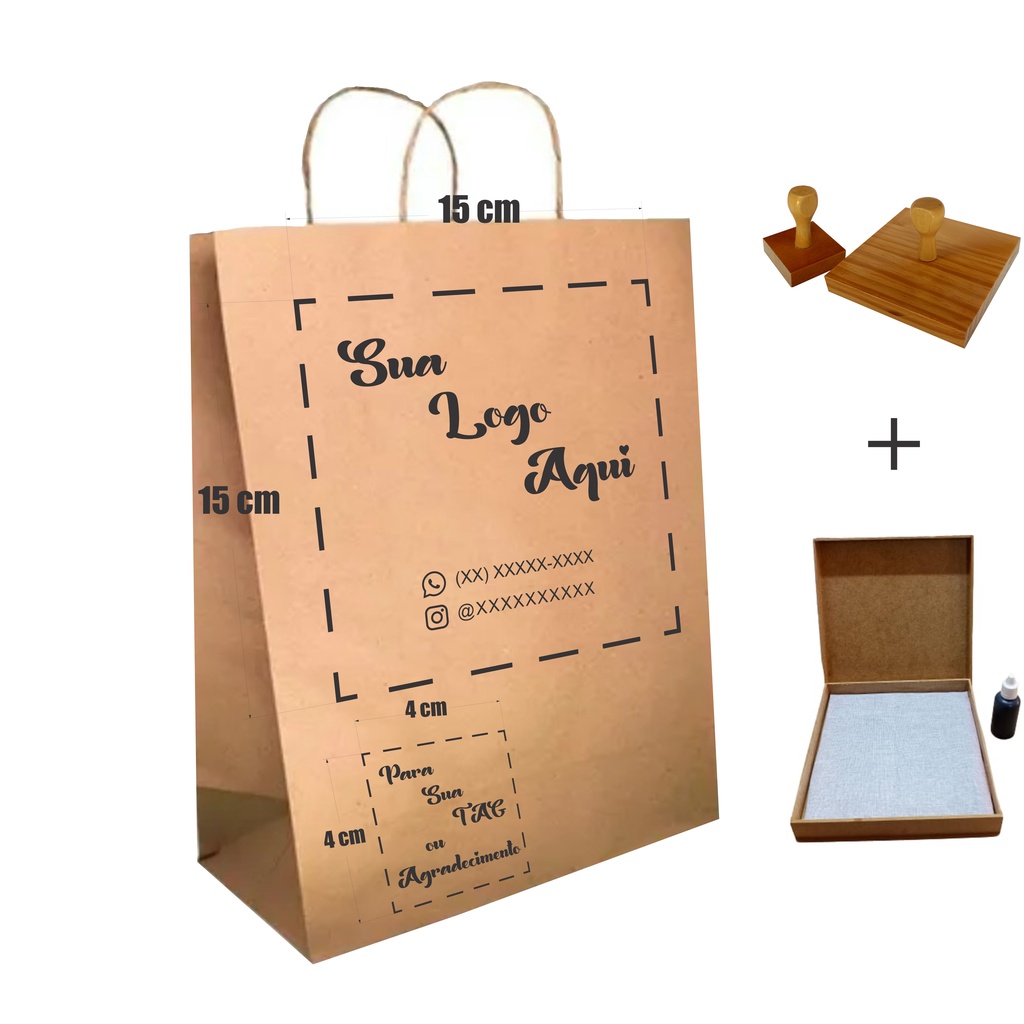 2 Carimbos Personalizáveis 1-15x15 + 1-4x4cm +Almofada+tinta