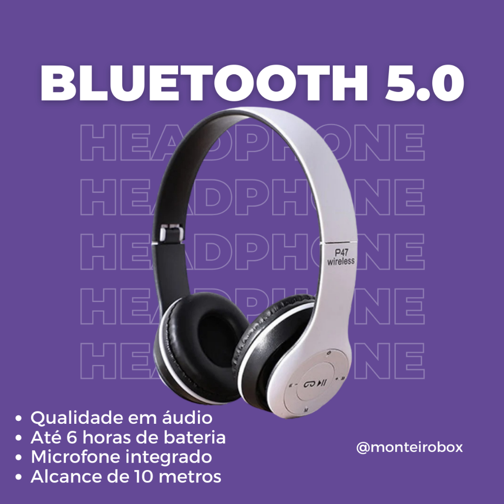 Fone Headphone Sem Fio Estéreo Cartão SD Rádio FM Bluetooth 5 Dobrável Universal Confortável