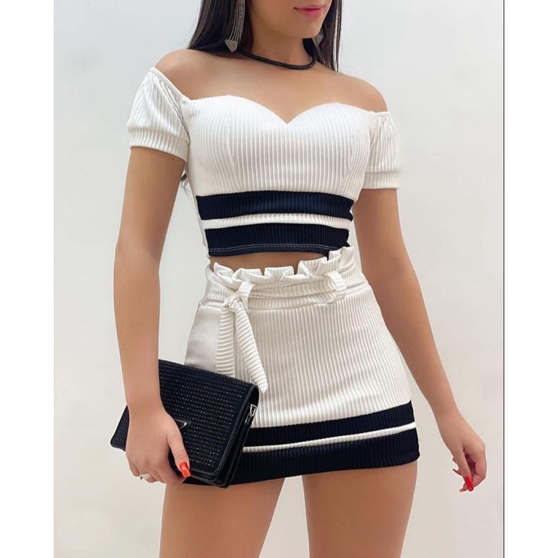 Conjunto Feminino Conjuntinho Short Saia 3D Conjunto Bicolor
