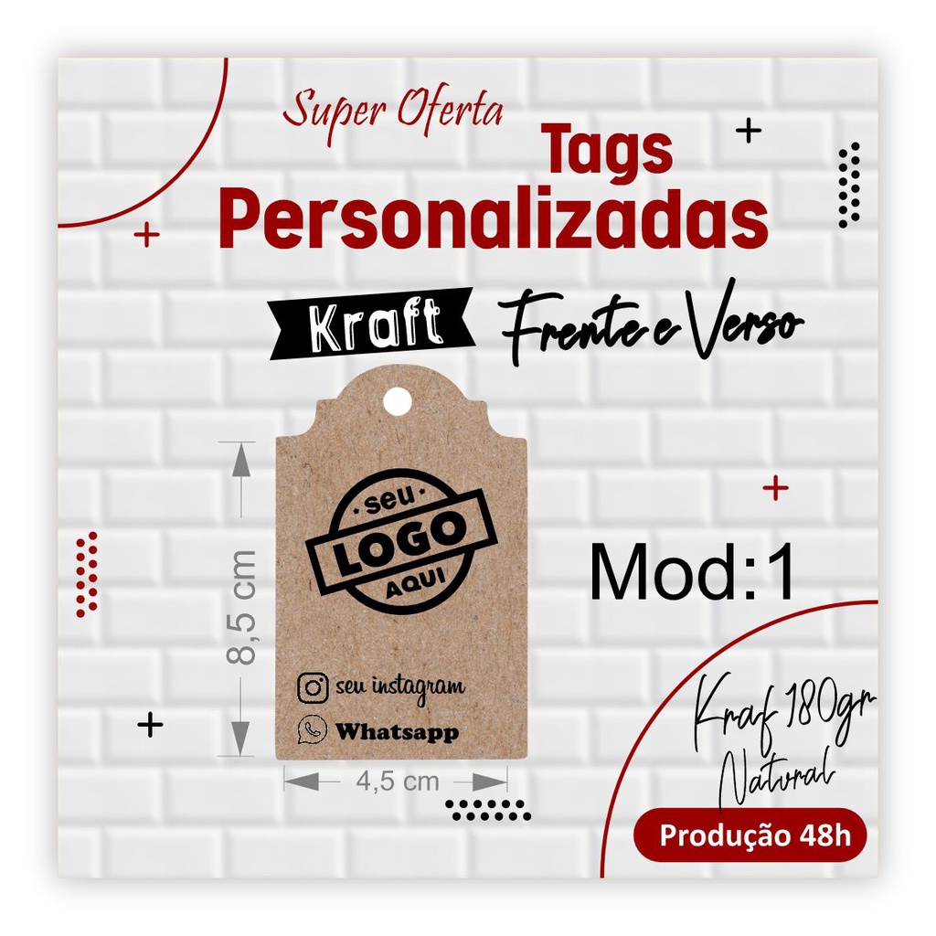 Tags Personalizadas - Frente e Verso 100un
