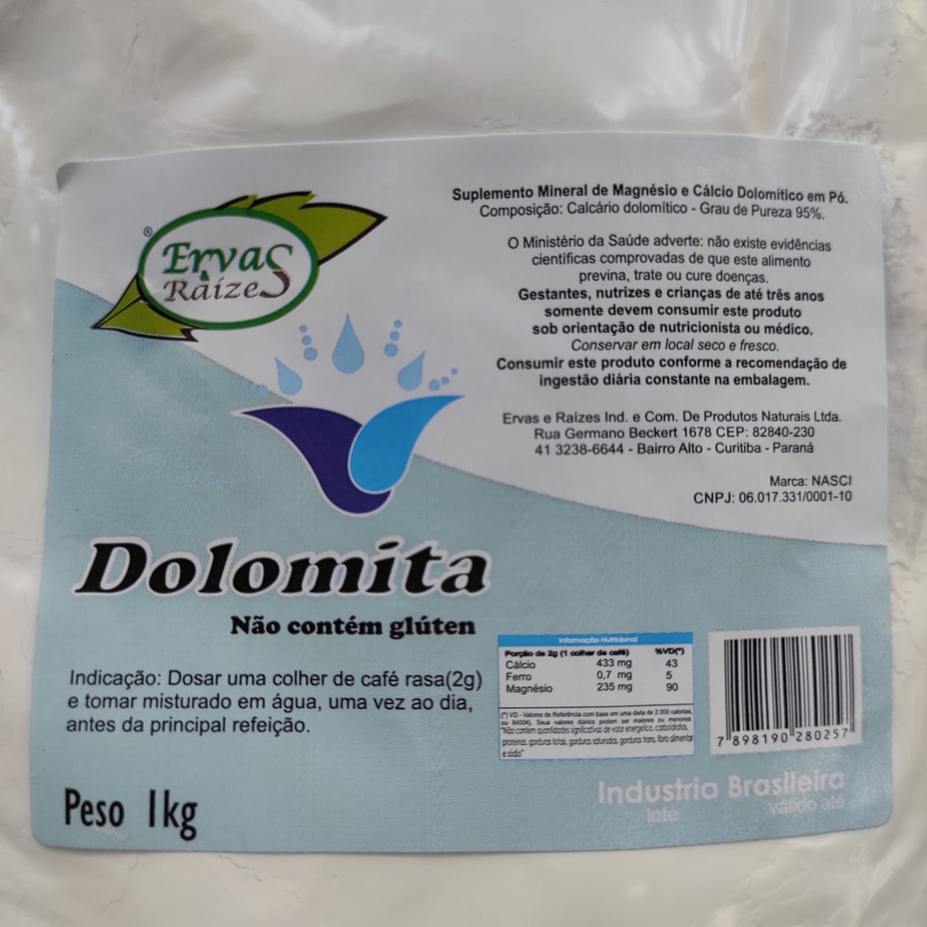 DOLOMITA 1Kg (Ervas Raizes) UNIDADE {suplemento mineral de magnésio e cálcio dolomita em pó}