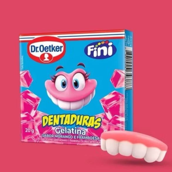 Gelatina Em Pó Dr. Oetker e Fini Sabor Banana, Dentadura e Beijos Edição Limitada - 20g