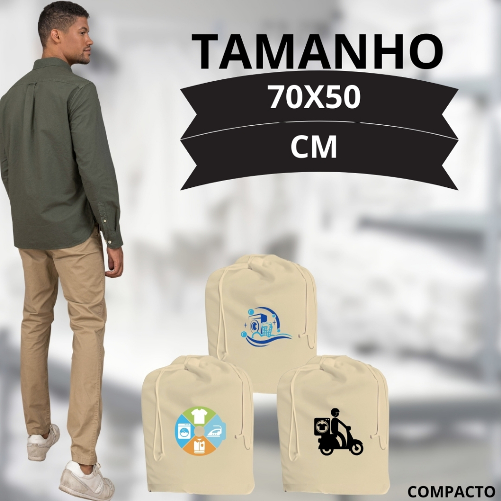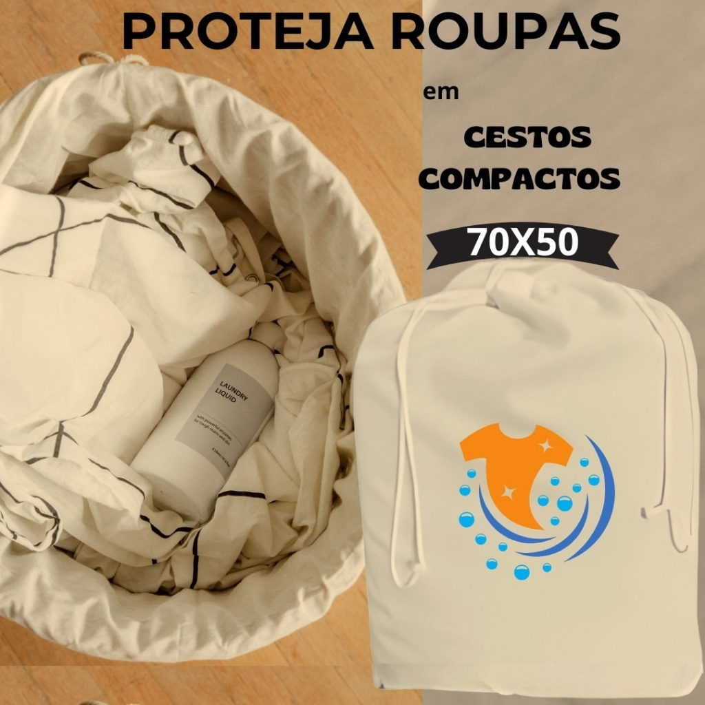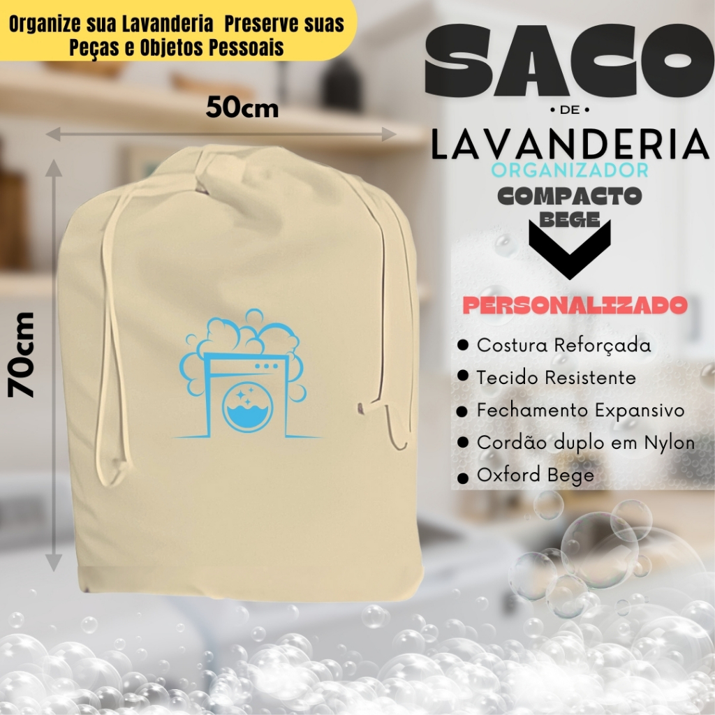 Saco de Lavanderia Cestos de Roupas (P) 70x50cm Org de Guarda Roupas Personalizado - Bege