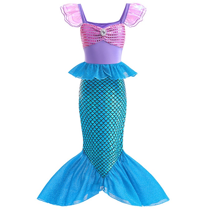 Fantasia Sereia Kid Meninas Festa De Aniversário Vestido Cartoon Ariel Princesa Cosplay