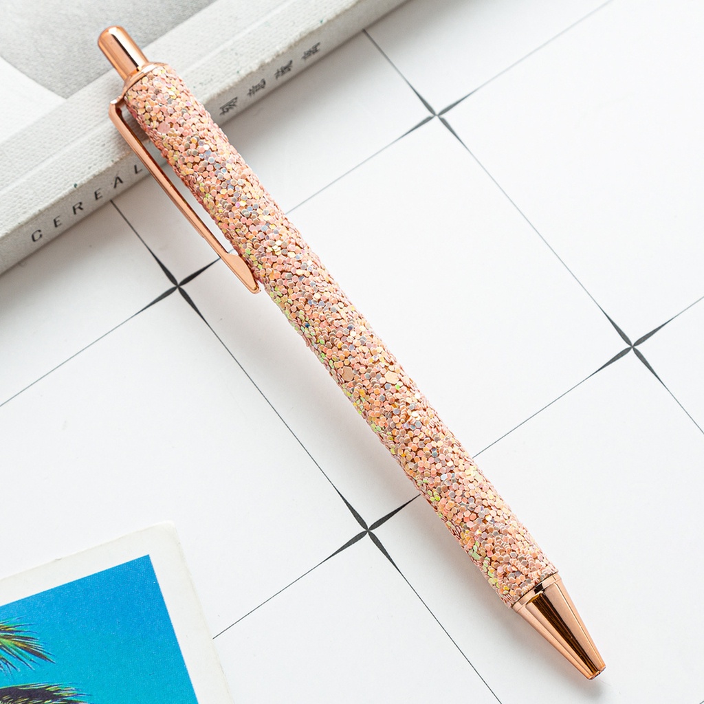2 Peças Caneta Esferográfica Luxuosa Fofinha Rosa Dourado E Metal/Material Escolar/Escritório/Casamento