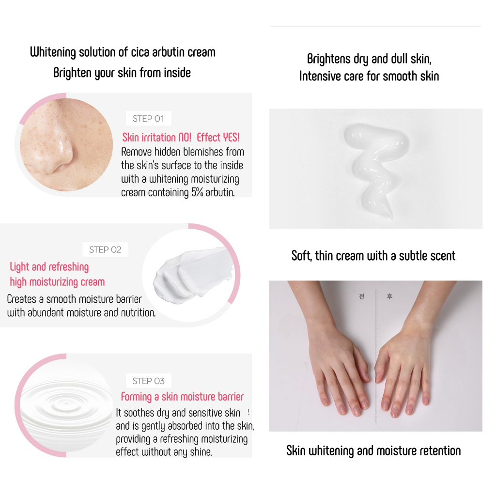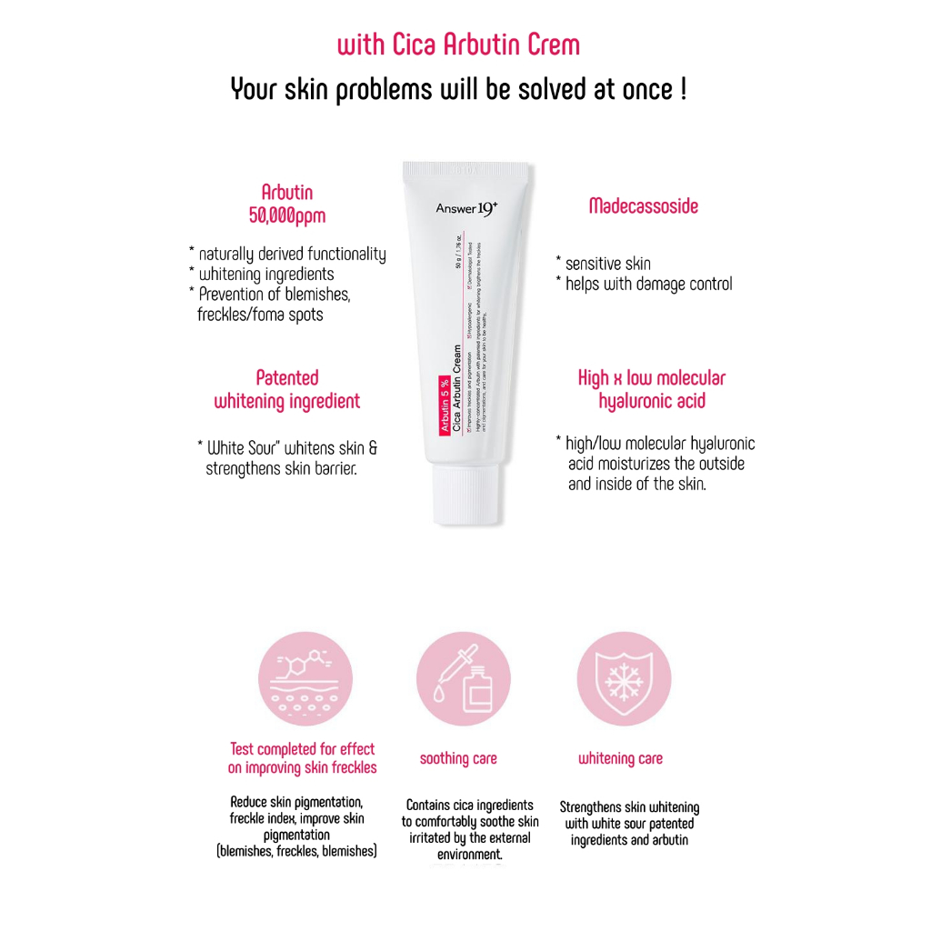 [Answer19] Cica Arbutin Cream 50g , 5 % , Clareamento , Remoção De Manchas , Cuidados Calmantes , madecassoside