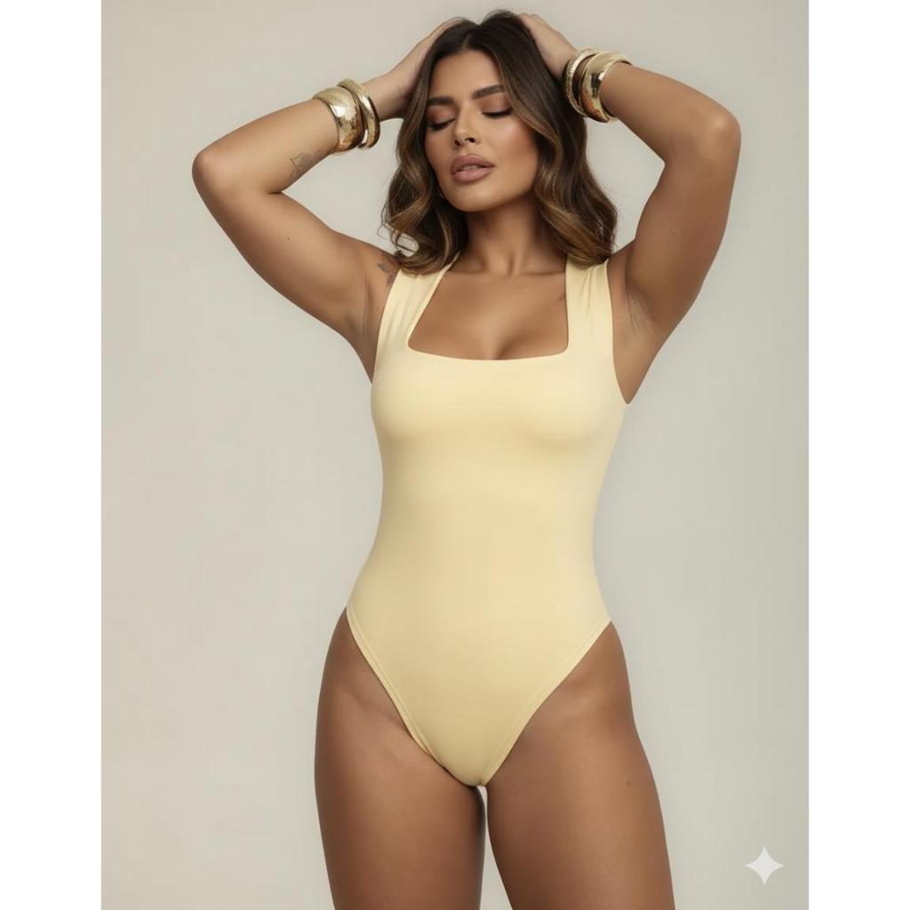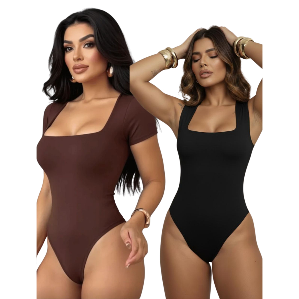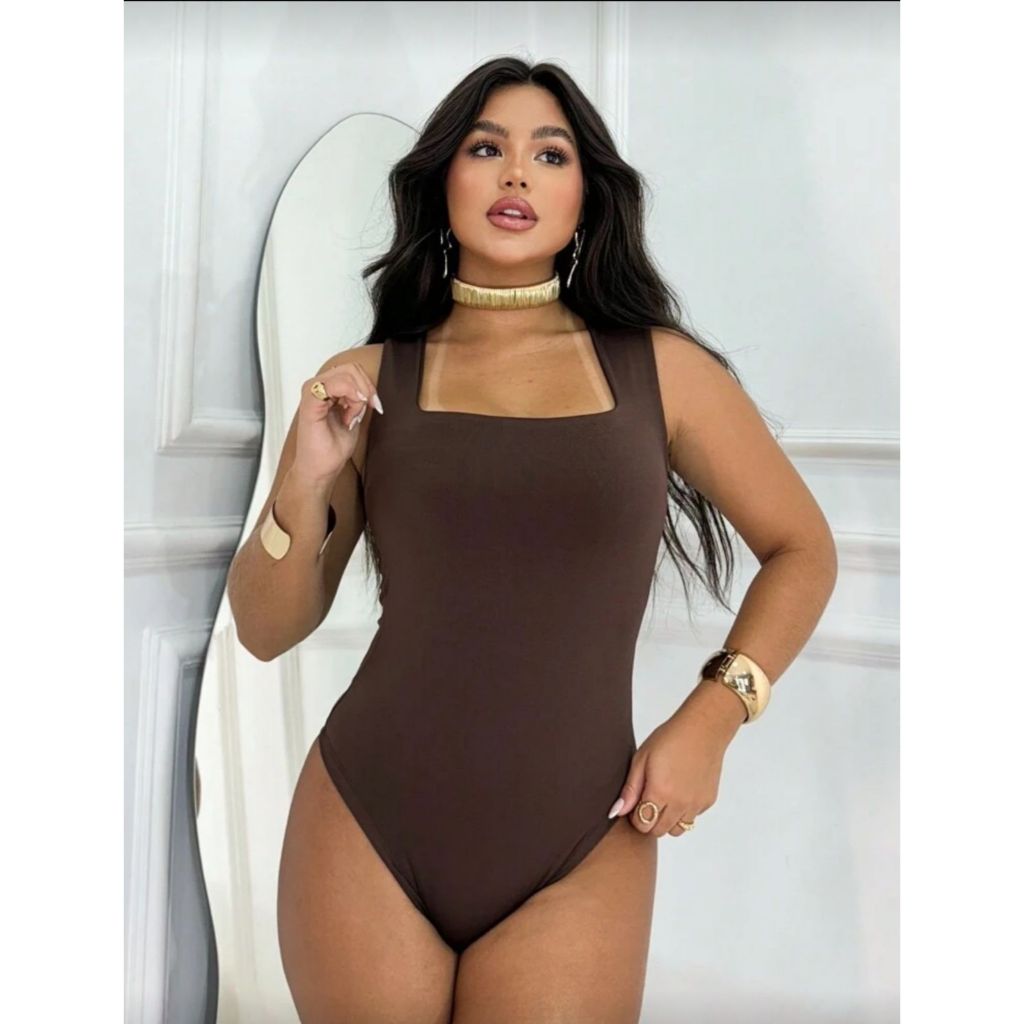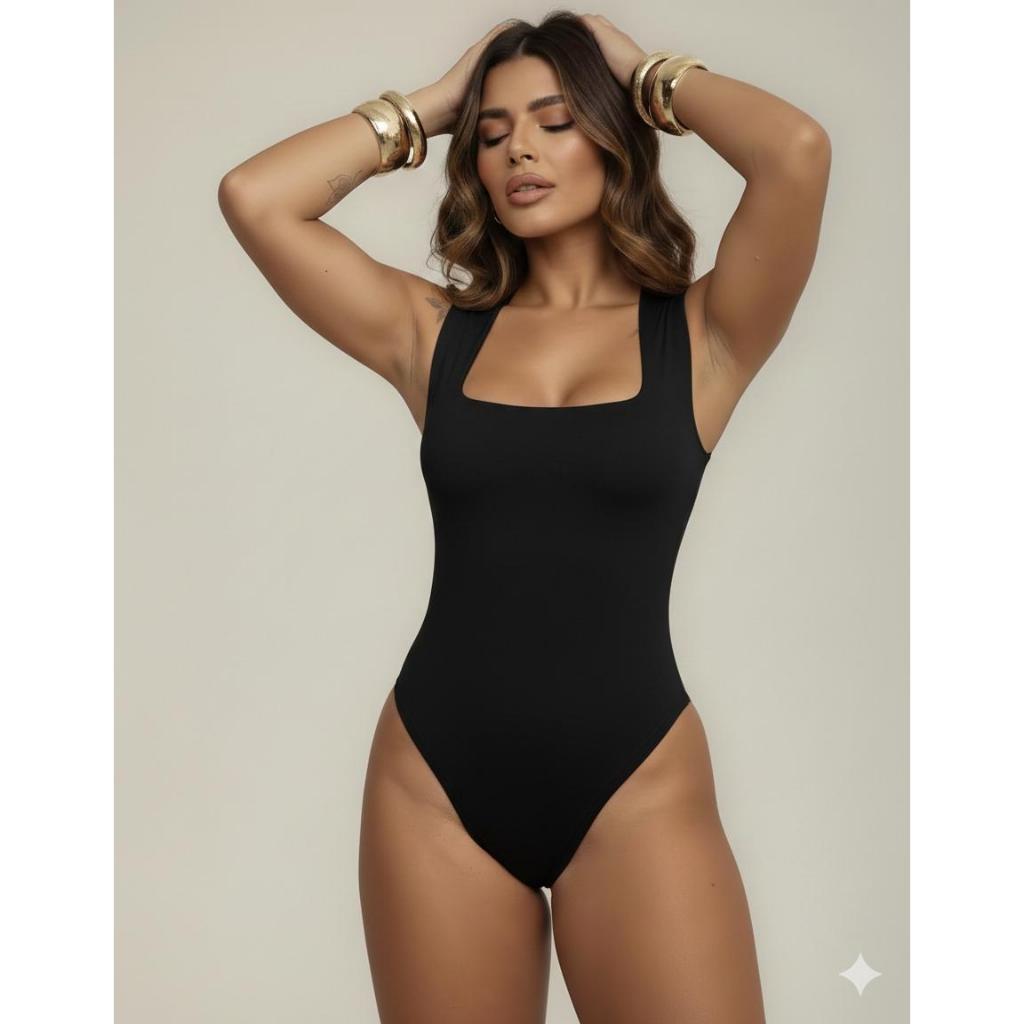 Body Suplex Bory Feminino Regata Blusa Decote Quadrado Com Forro Estilo Blogueira