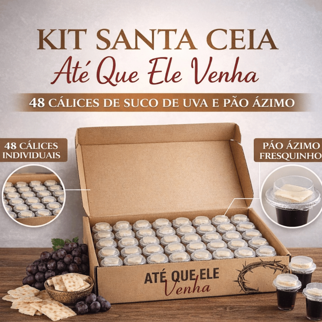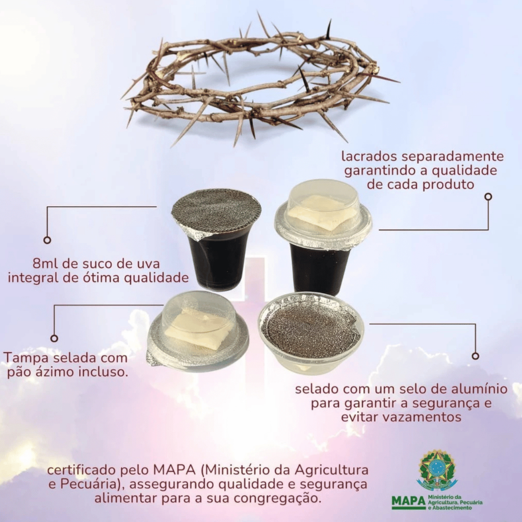 Kit Santa Ceia Suco Uva Integral + Pão Ázimo Individual Cristão Evangelico Igreja Ceia do Senhor
