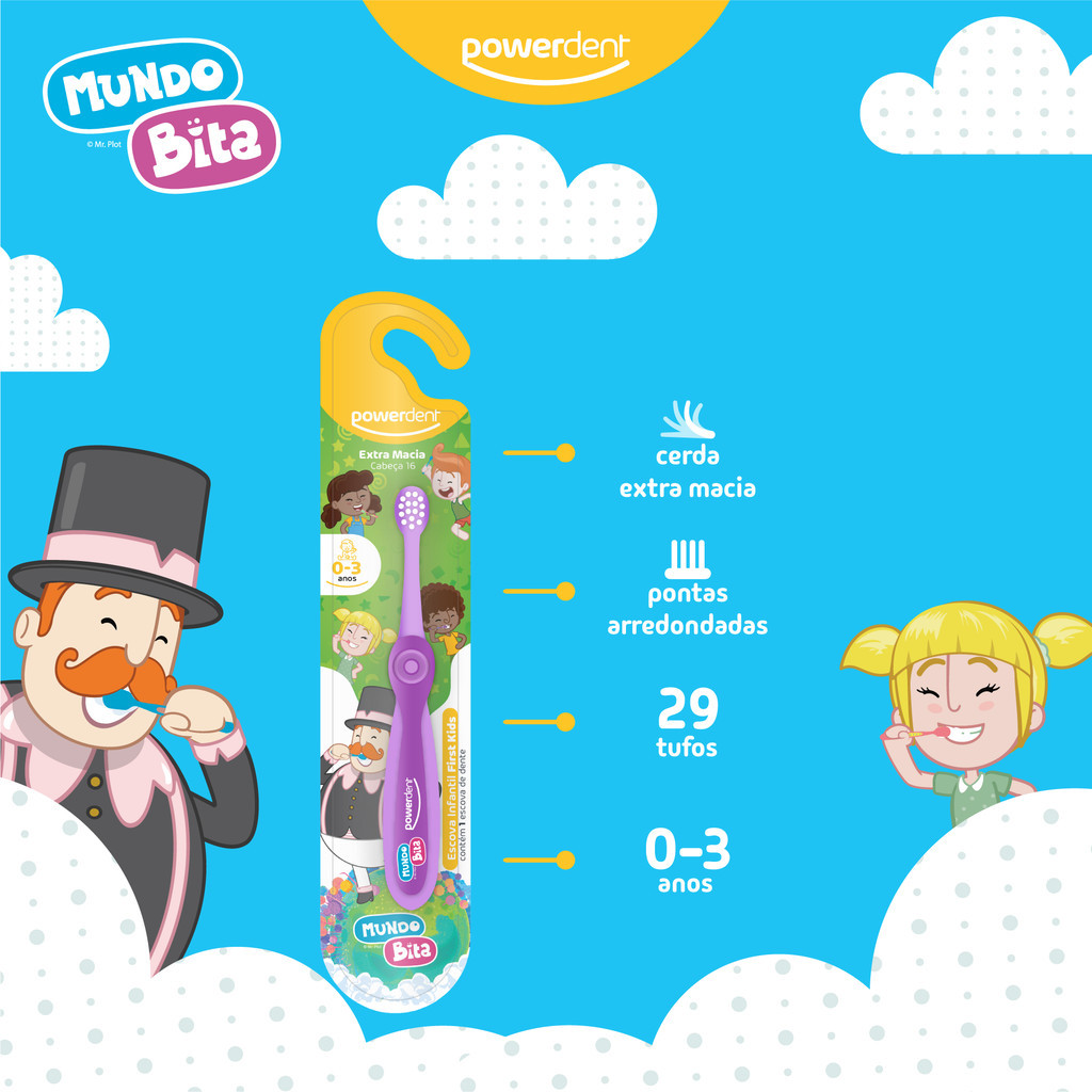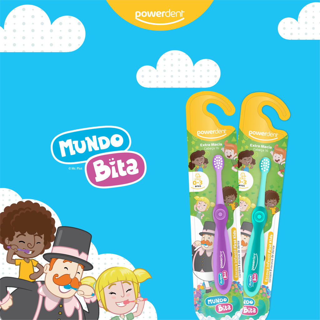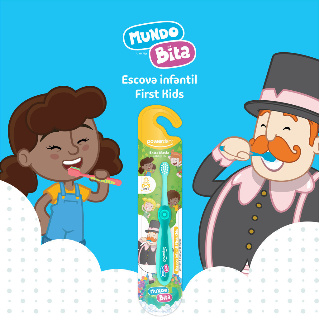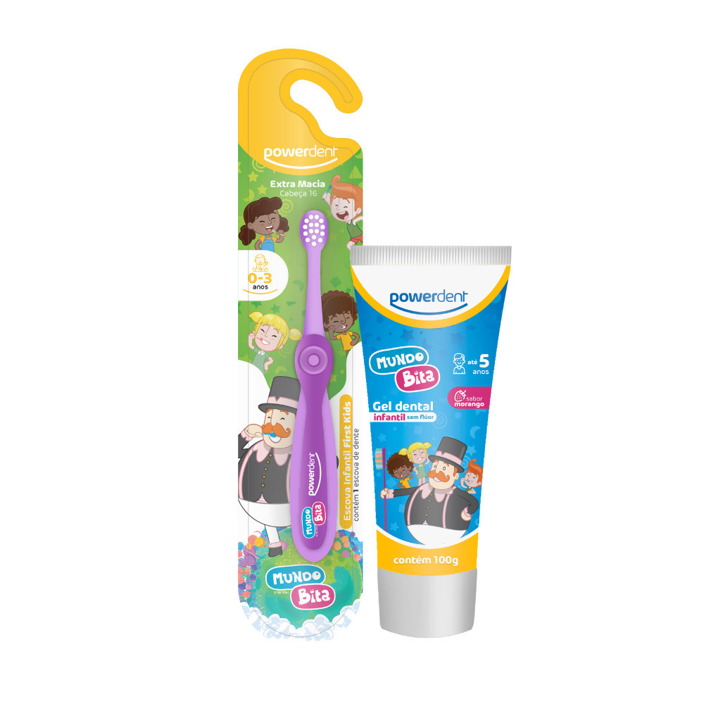Kit Escova Dental Infantil Mundo Bita First Kids + Gel Dental Sem Fluor Mundo Bita Powerdent