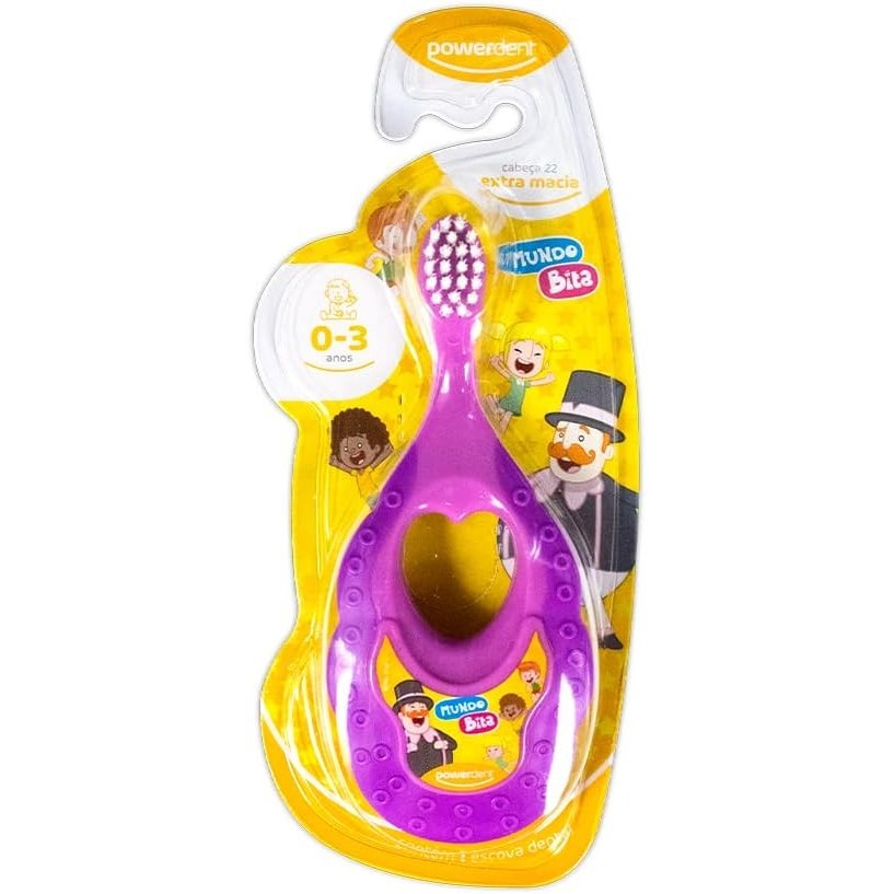Escova Dental Infantil com Mordedor Mundo Bita Powerdent - Crianças de 0 a 3 anos