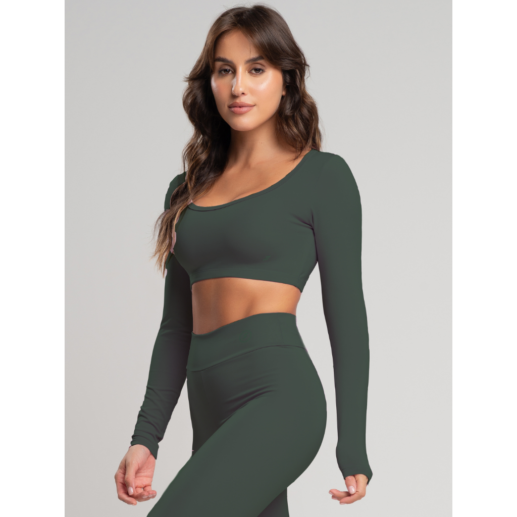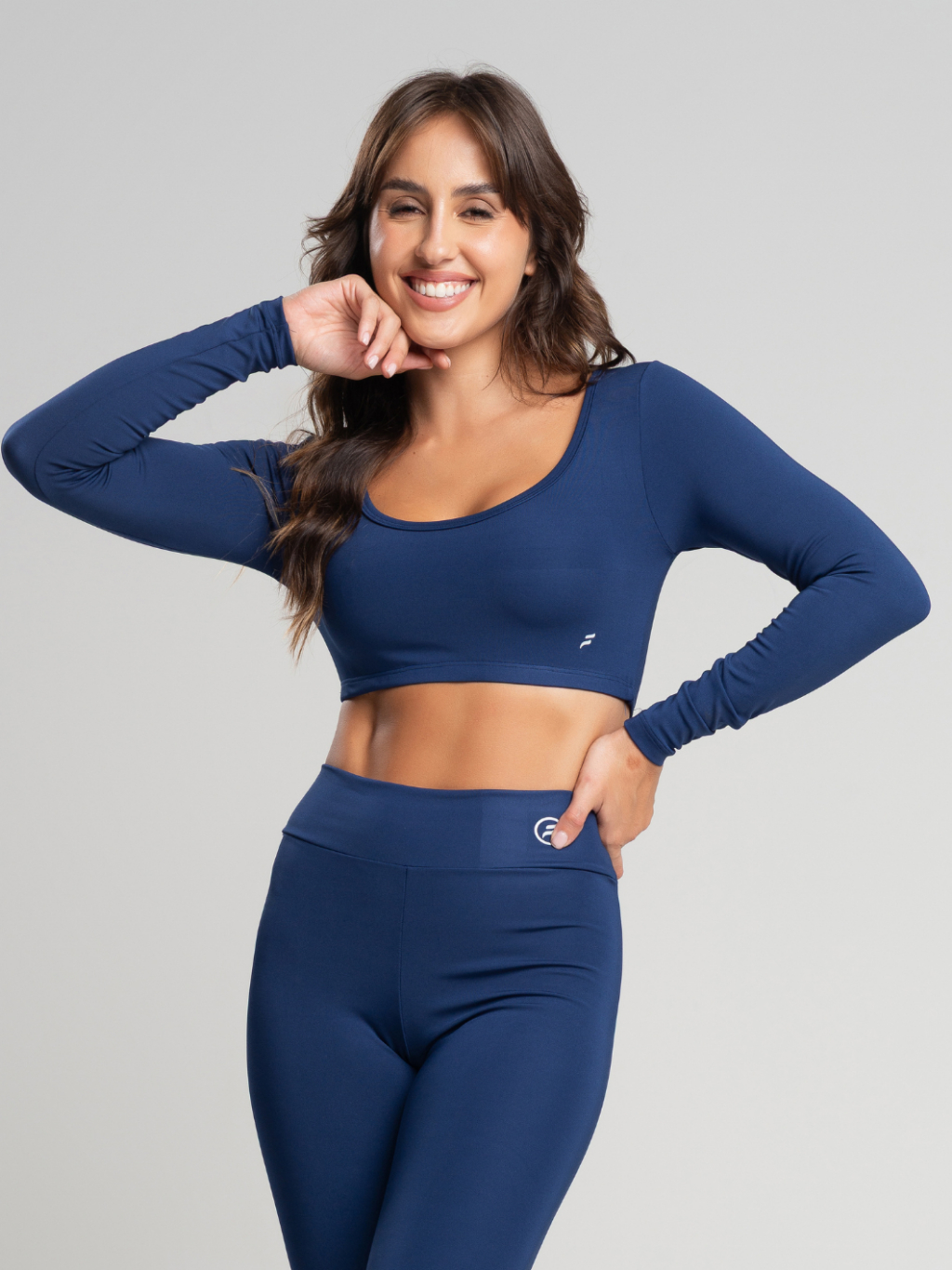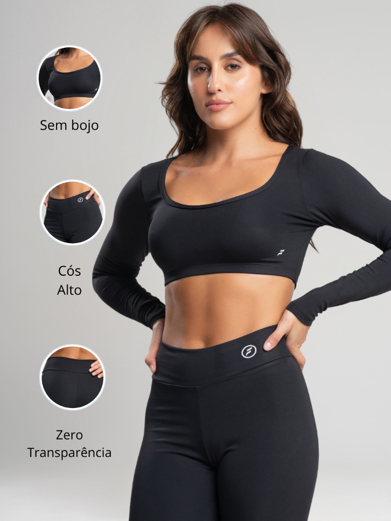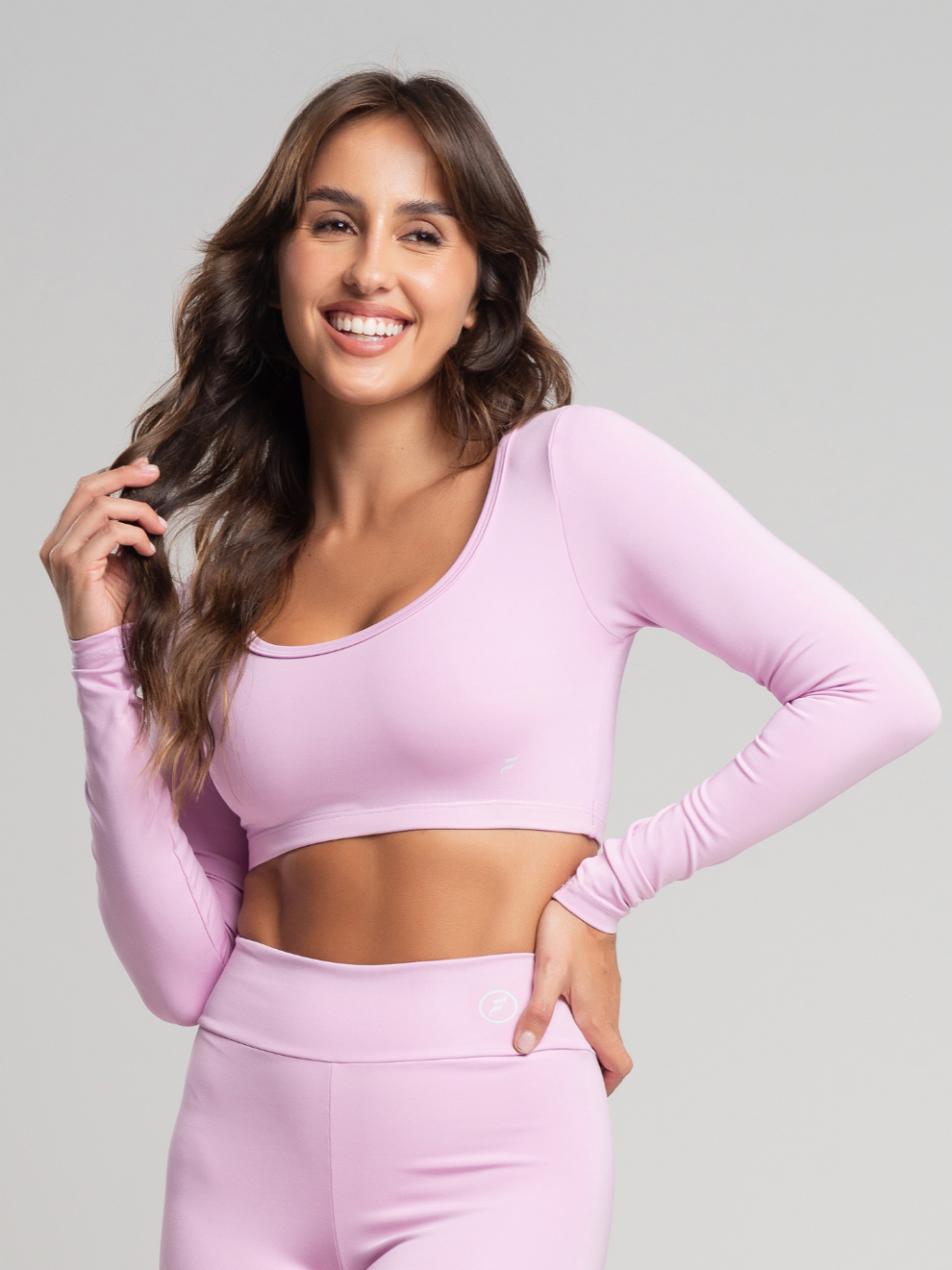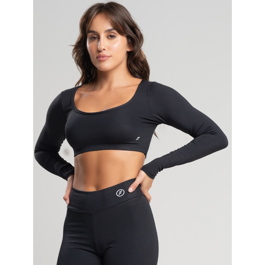 Top Cropped Manga Longa Fitness Feminino Academia Suplex Zero Transparência Forrado Sem Bojo
