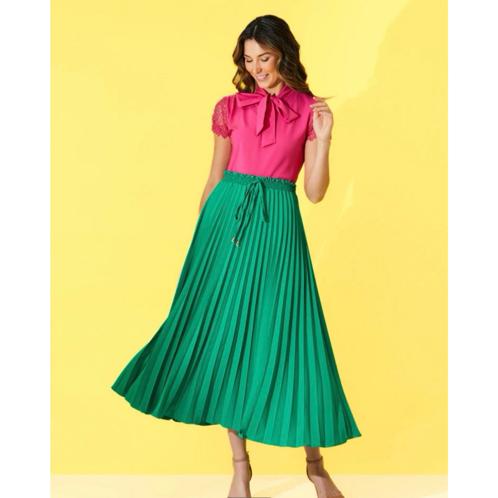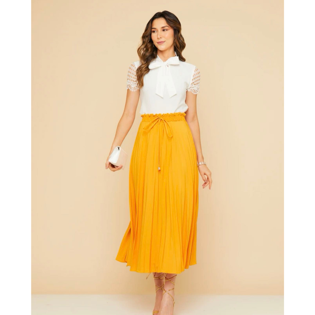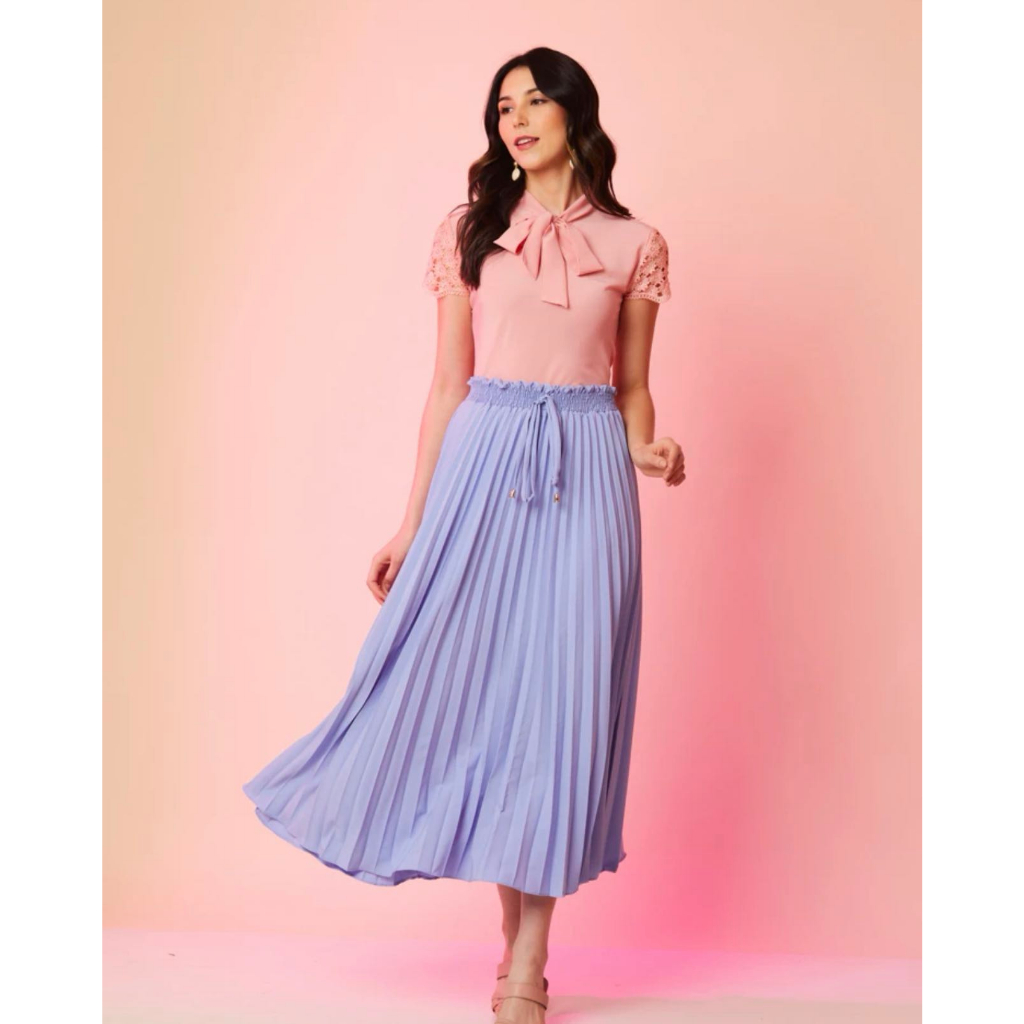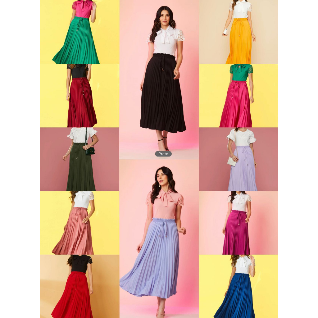 Saia Plissada Tendência Evangelica Com a Lastex na Cintura -0204