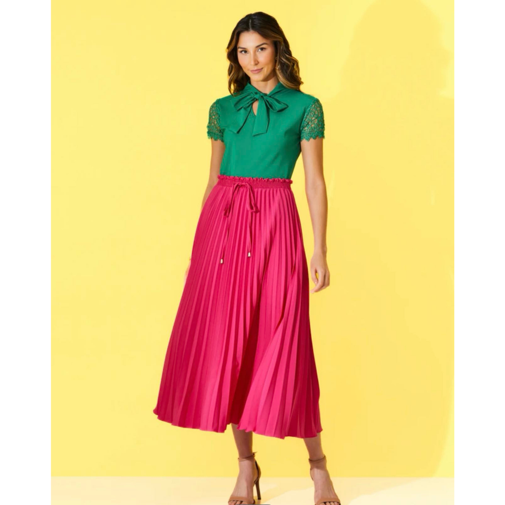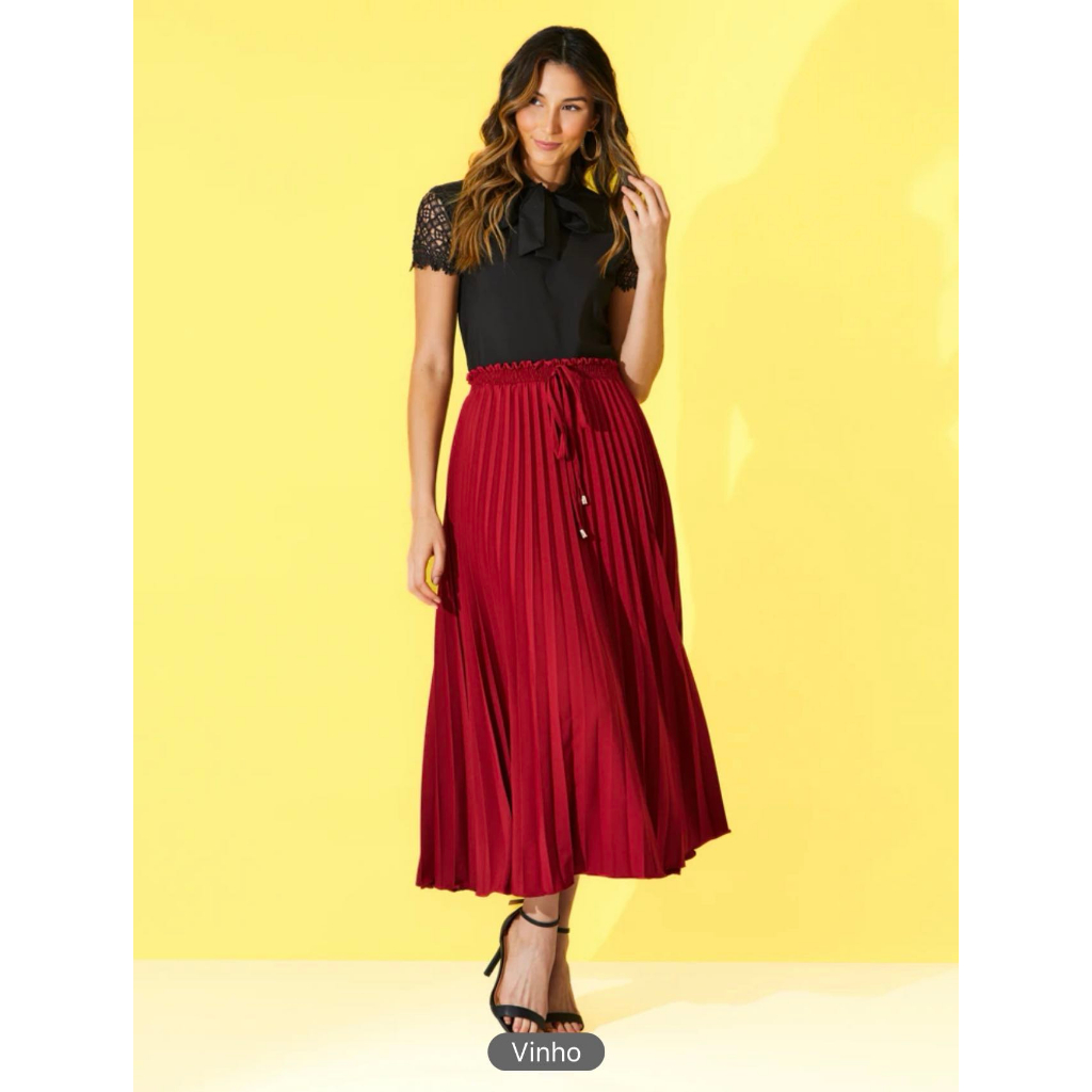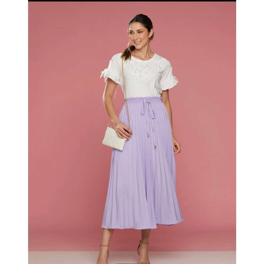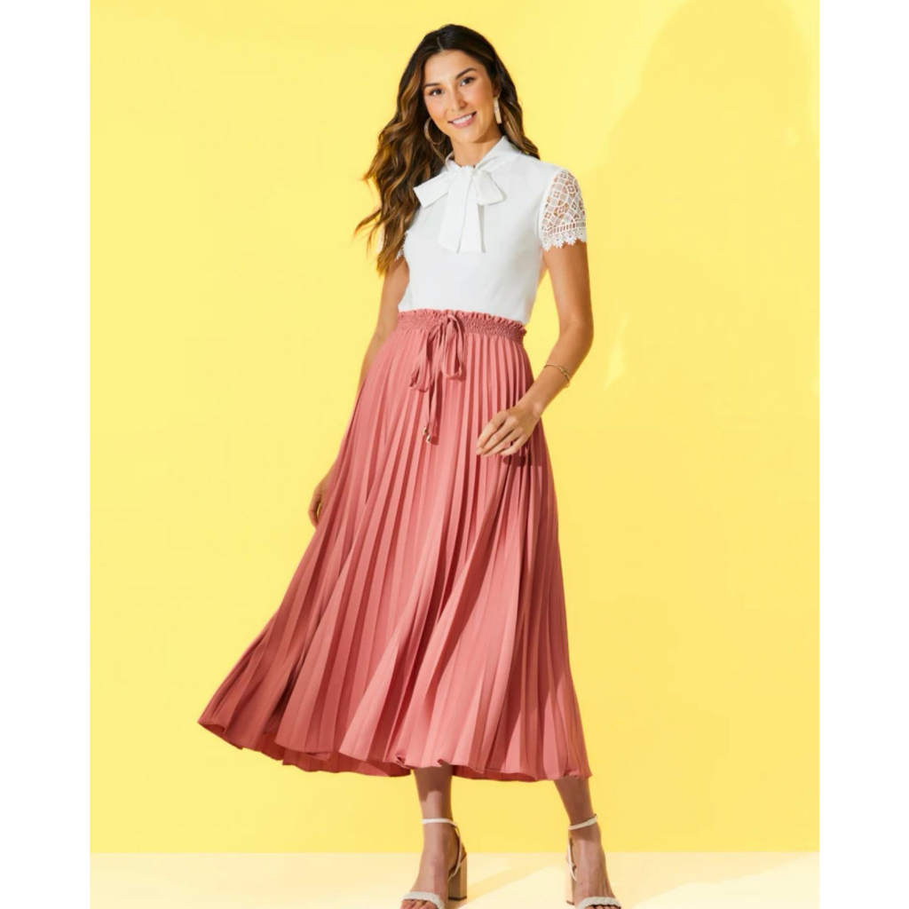 Saia Plissada Tendência Evangelica Com a Lastex na Cintura -0204