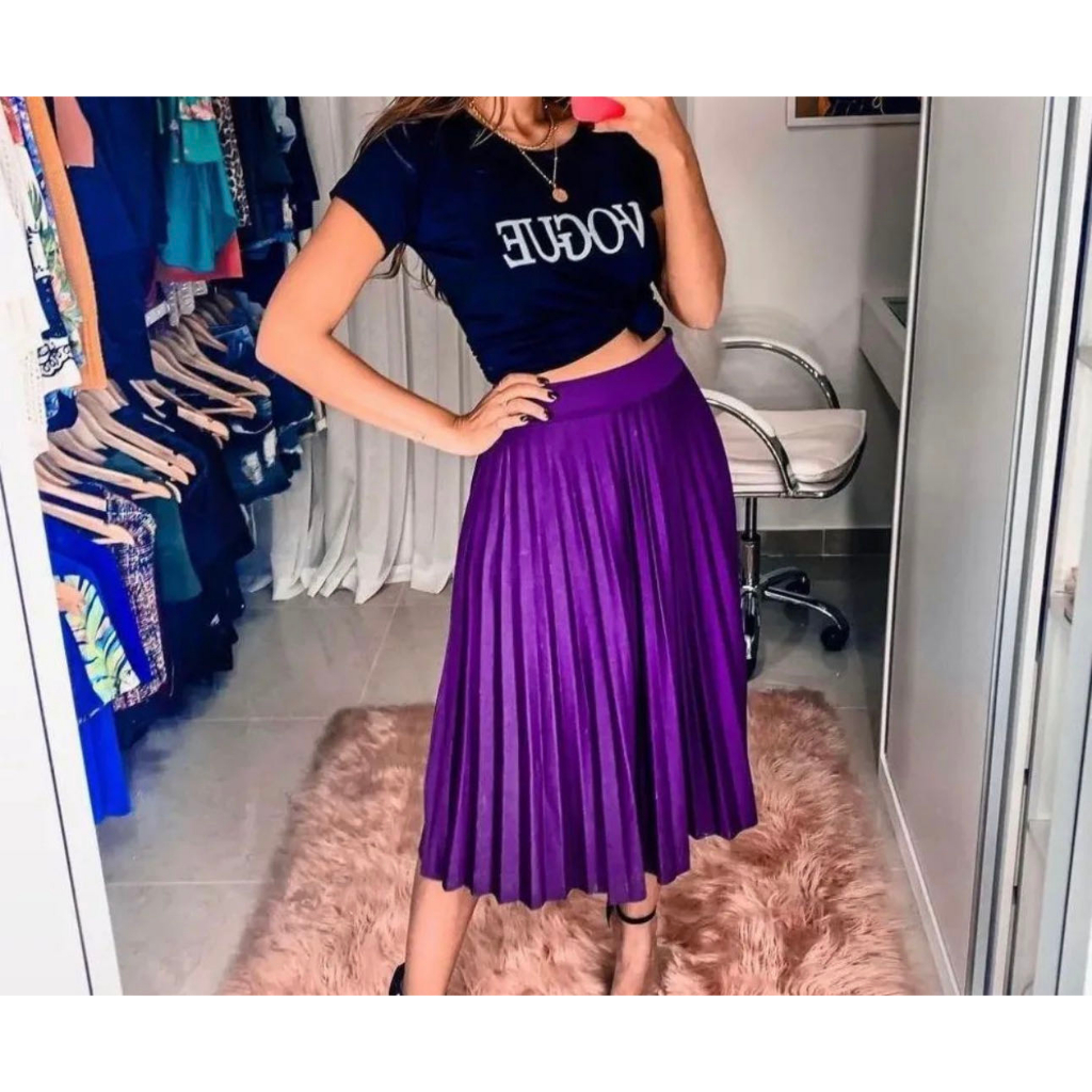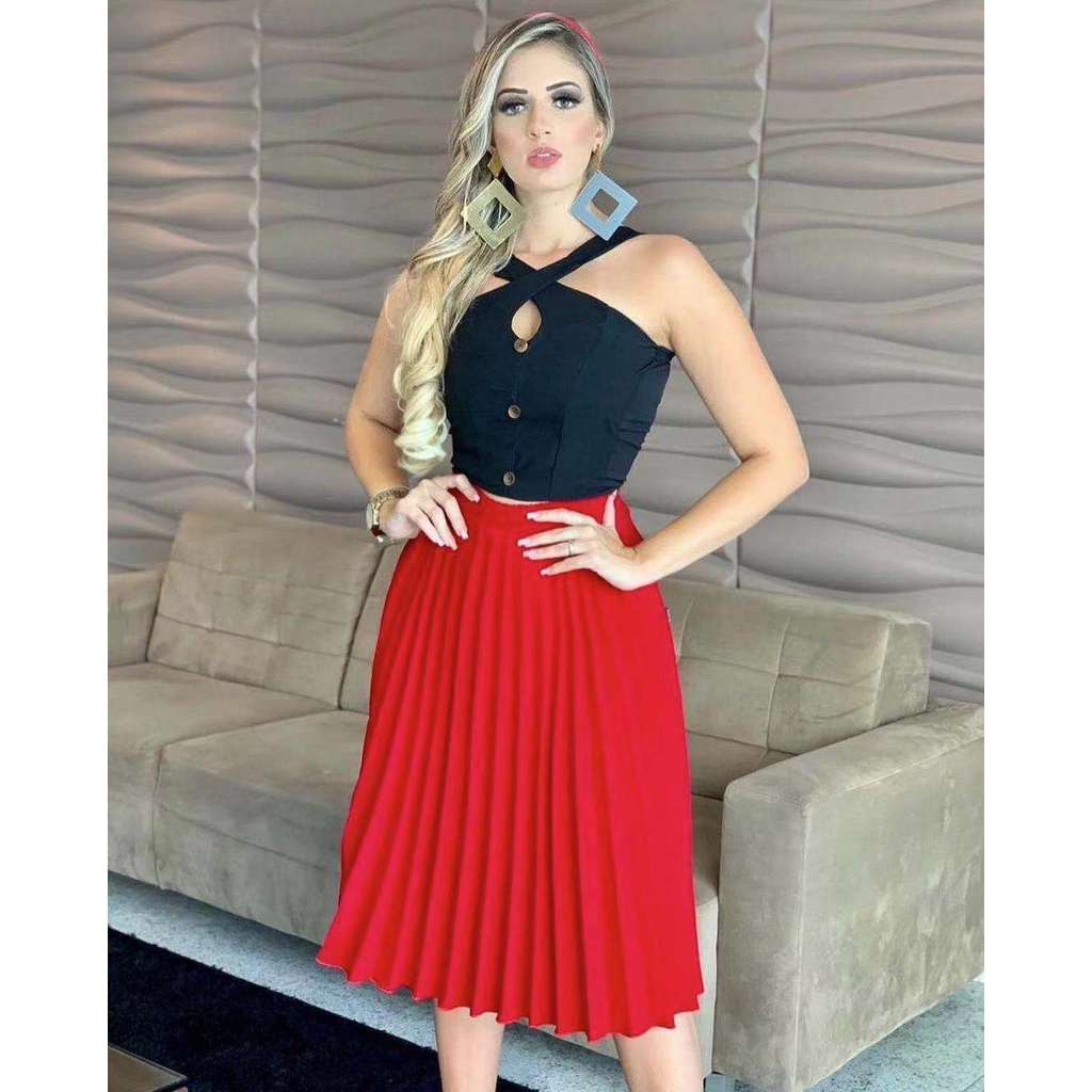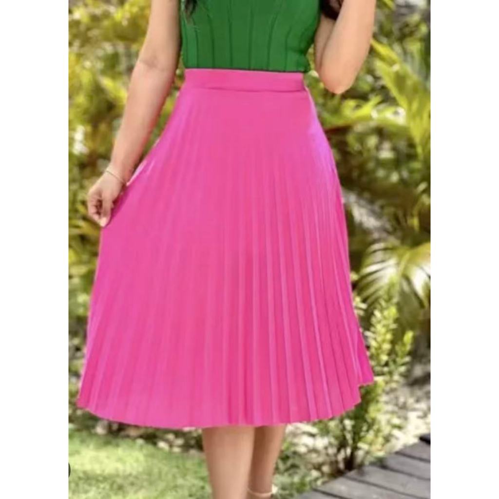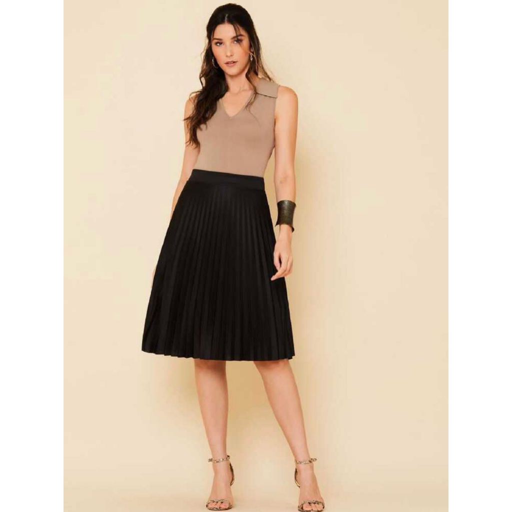Saia Plissada Midi Forrada Lisa-080