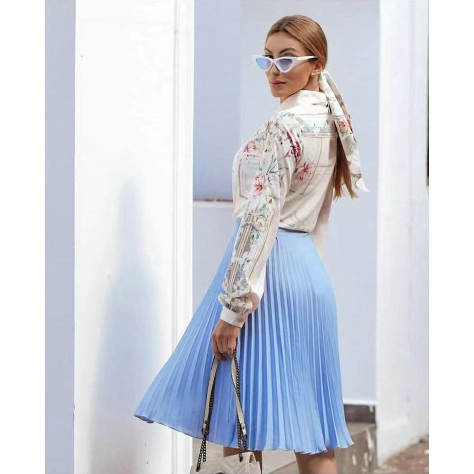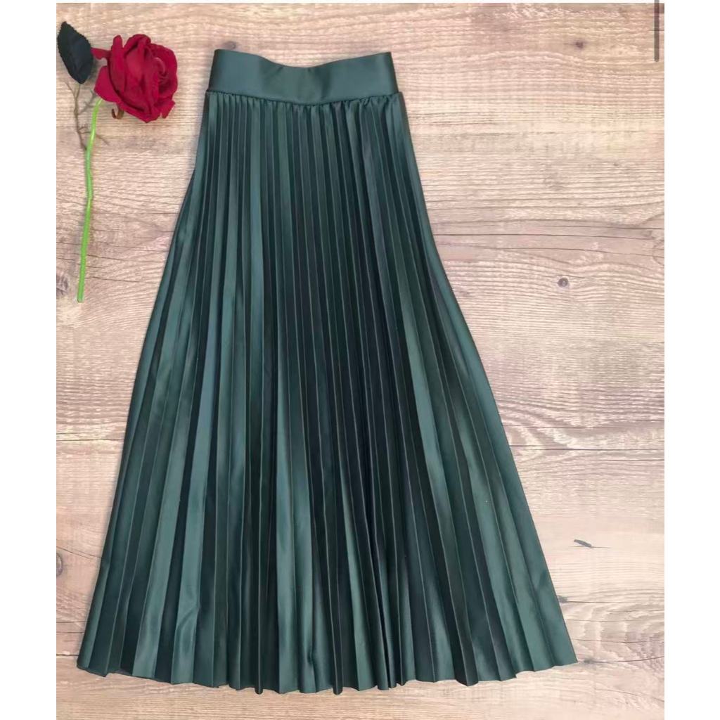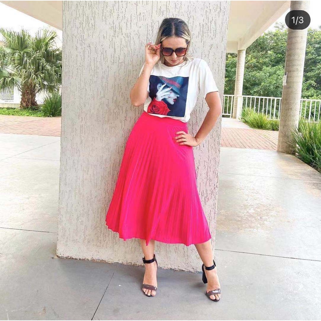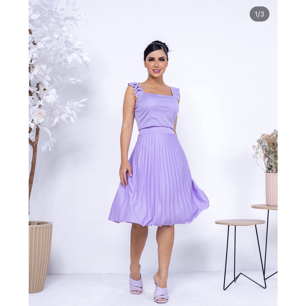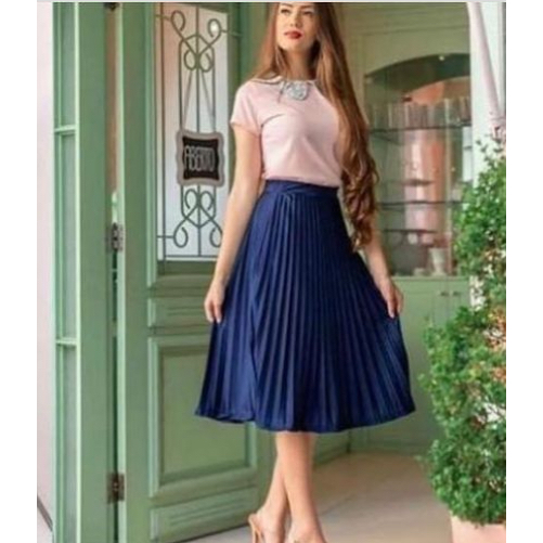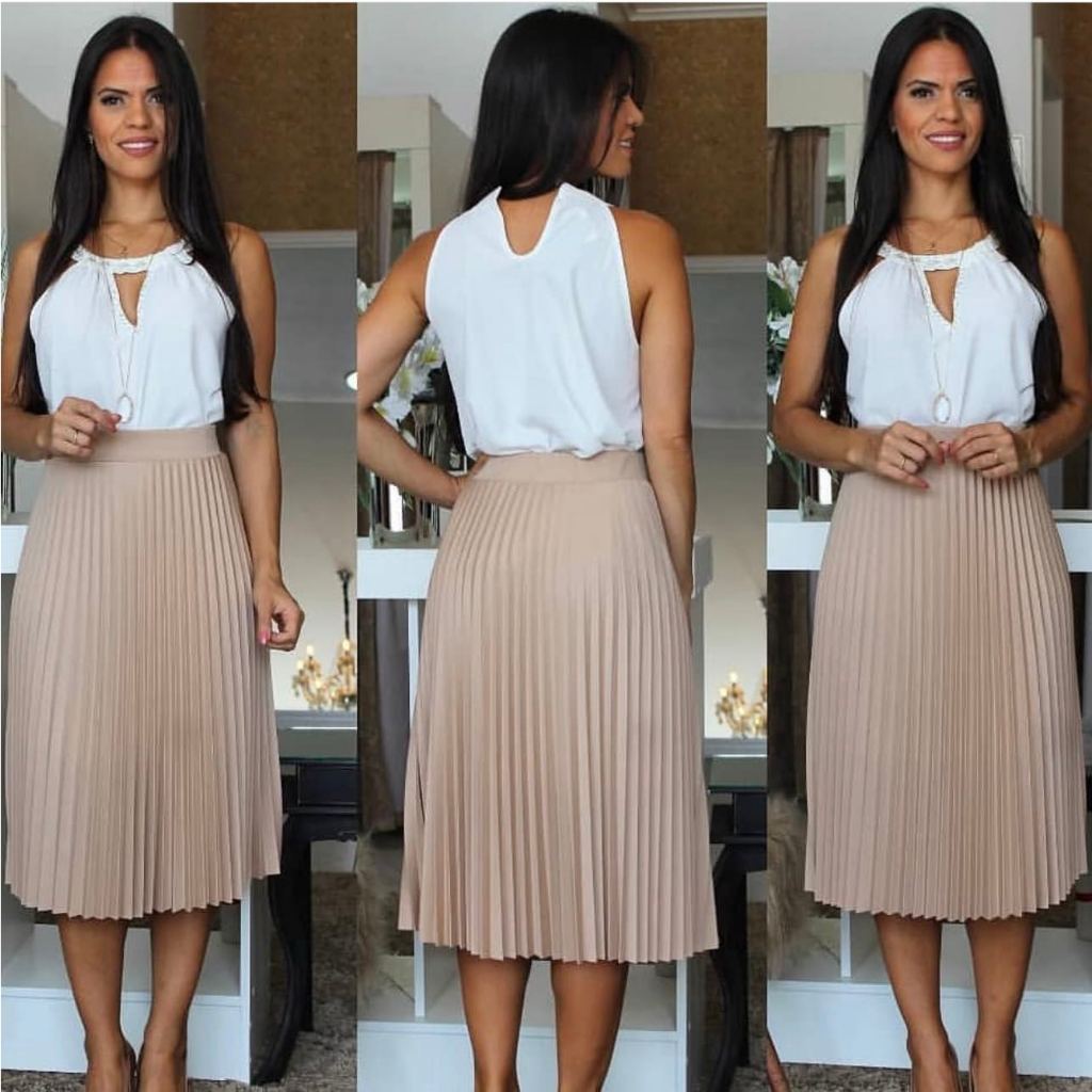 Saia Plissada Midi Forrada Lisa-080