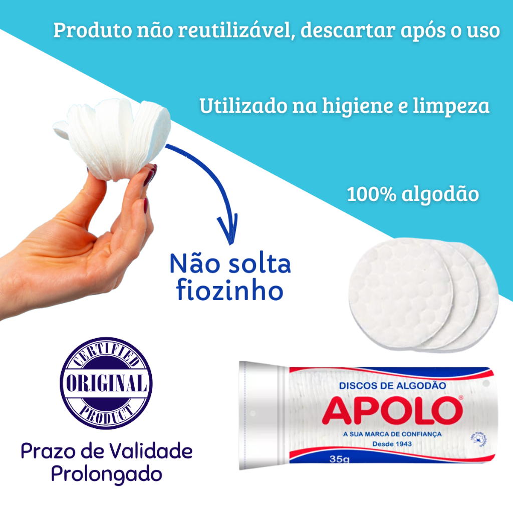 Kit 15 Disco de Algodão Apolo Para o Rosto Limpeza Facial Remoção de Maquiagem Atacado