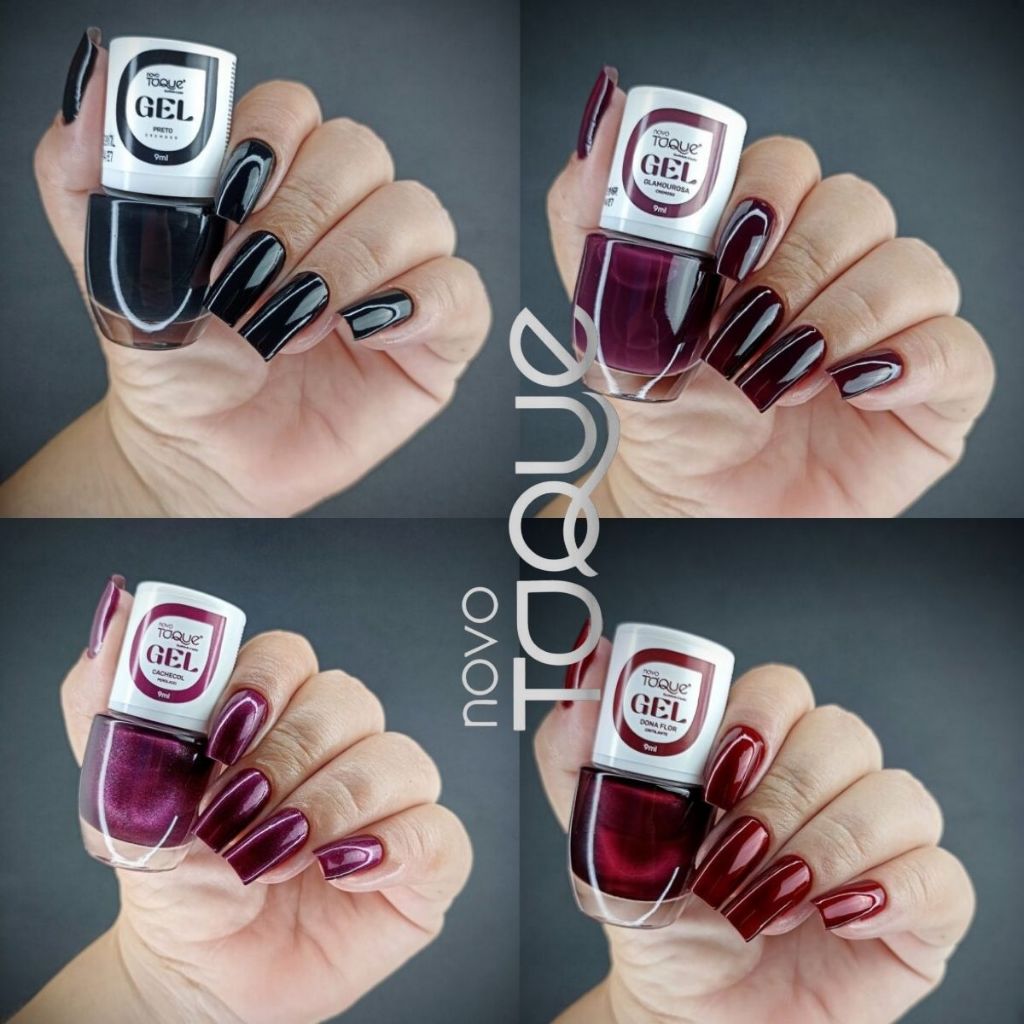 Kit 6 Esmaltes Novo Toque Efeito Gel Tons Escuros Clássicos Manicure Pedicure Longa Duração