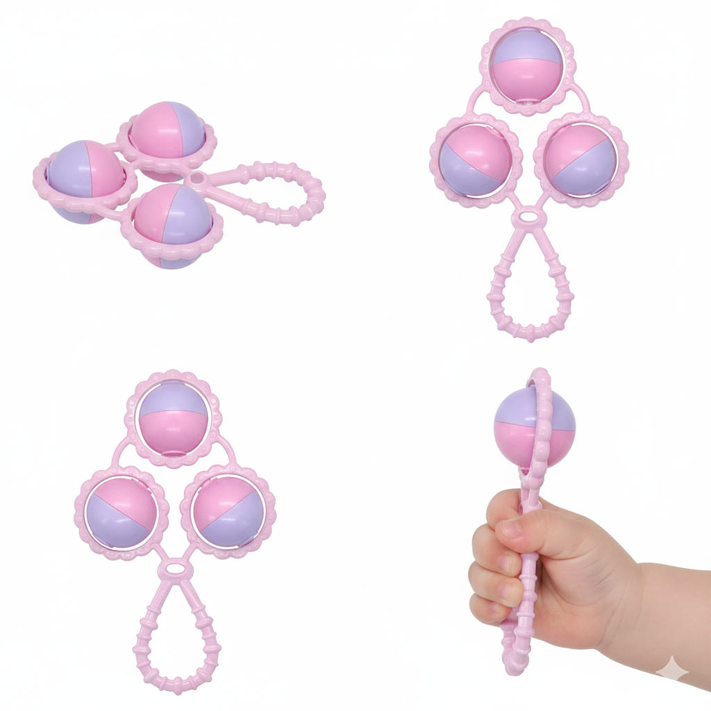 Chocalho De Bebe Rosa Infantil Menina 3 Bolinhas Tradicional