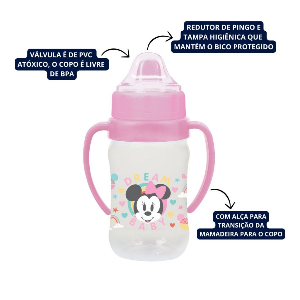 Copo De Transição Infantil Com Redutor de Pingo 300ml Minnie Disney