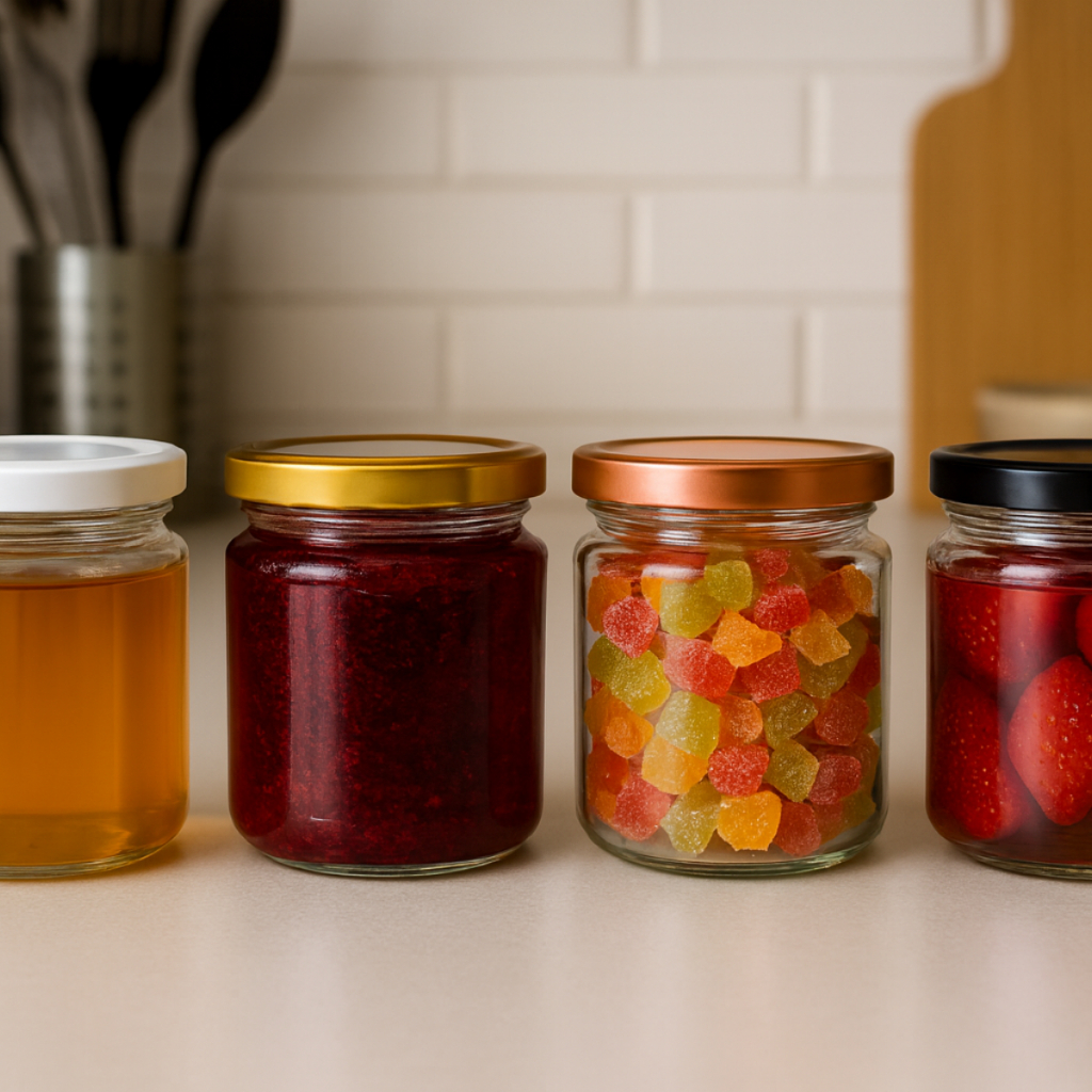 Kit Potes De Vidros Belem 240ml Para Pudim Mel Bolo no Pote Doces Brigadeiro Tampas Metálicas
