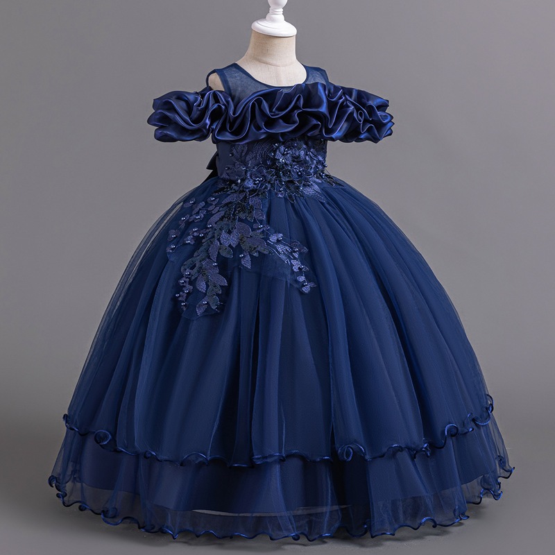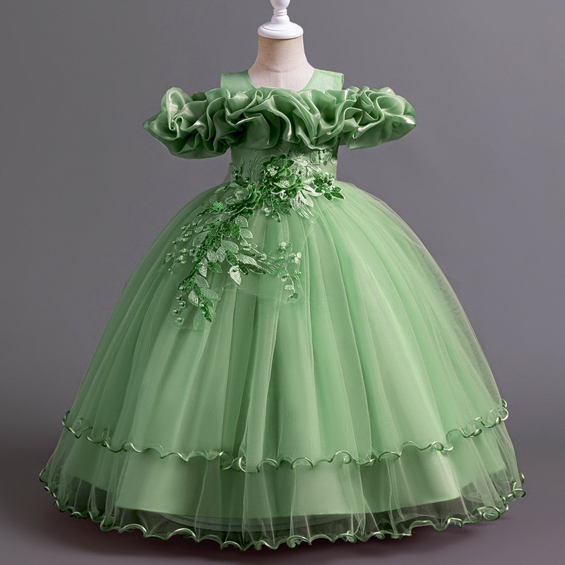 MQATZ Adolescente Longo Dama De Honra Meninas Vestido Floral Casamento Vestidos Princesa Elegante Fora Do Ombro ALP-0031