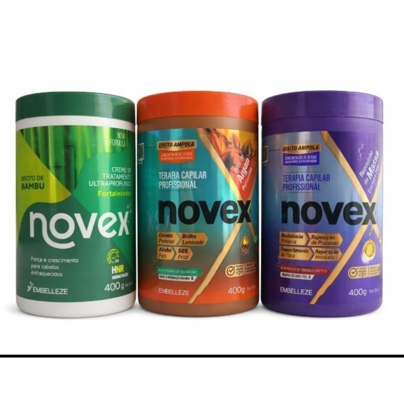 Kit Cronograma Novex 400g Broto de Bambu + Óleo de Argan + Reposição Massa (Hid + Rec + Nut)