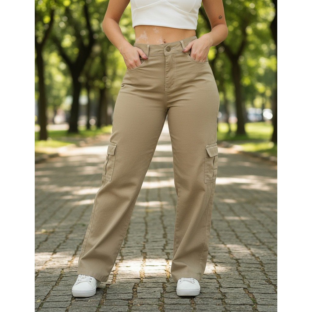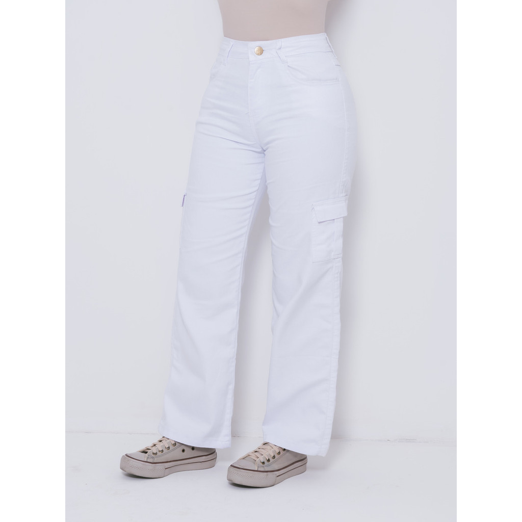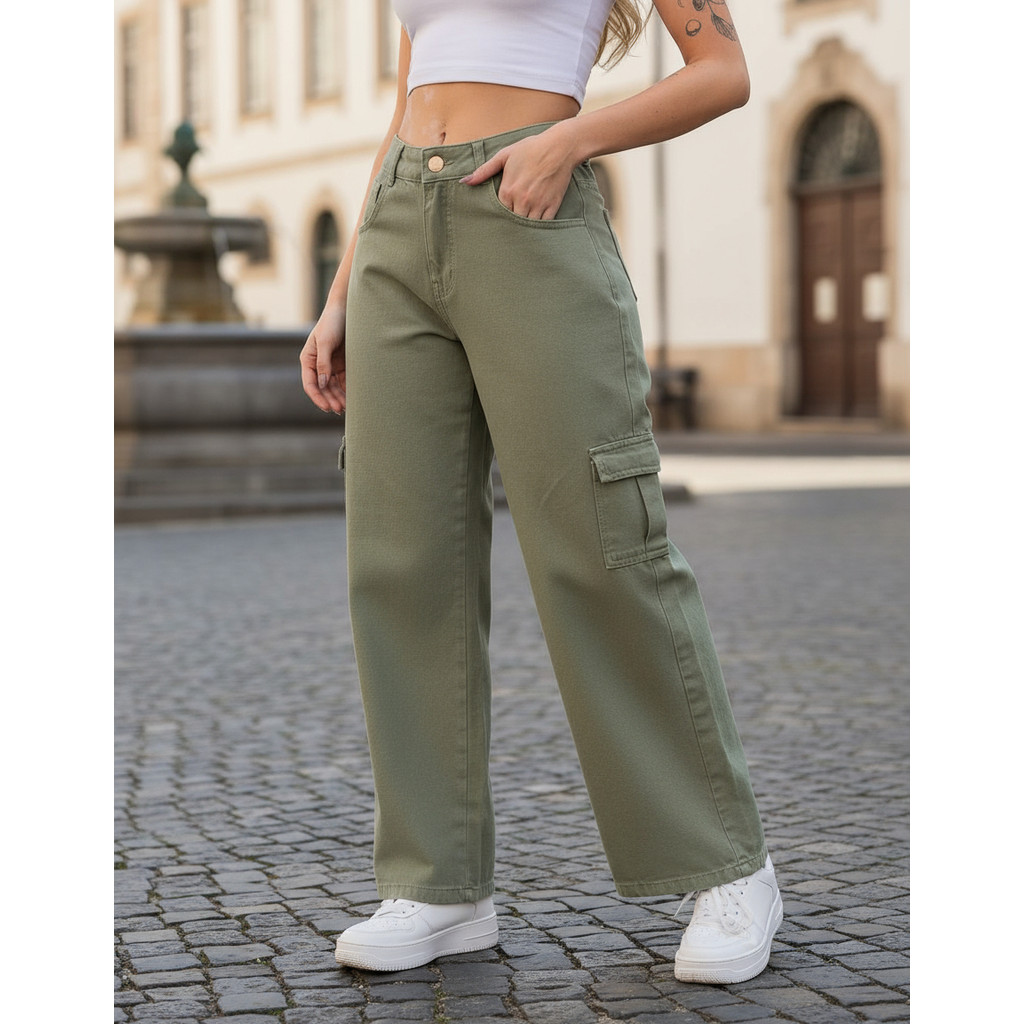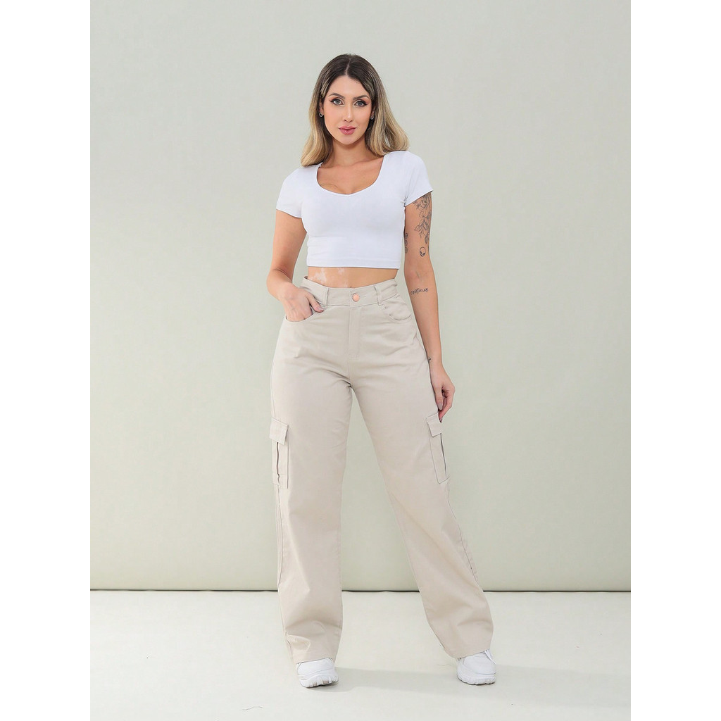 Calça Feminina Wide Leg Cargo, Cintura Alta