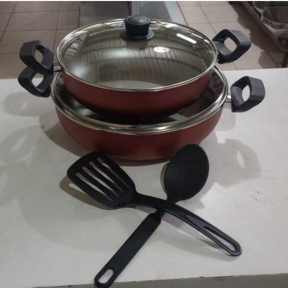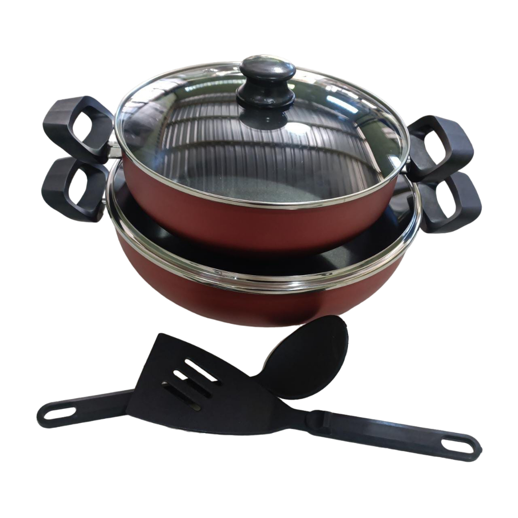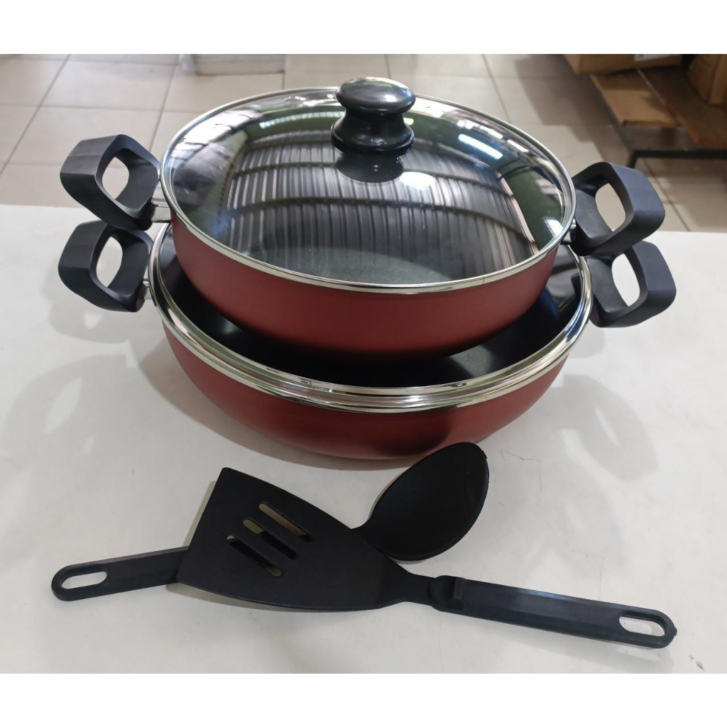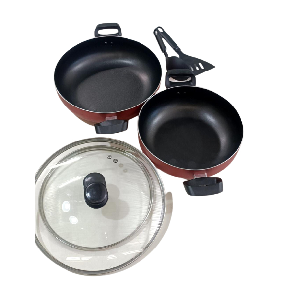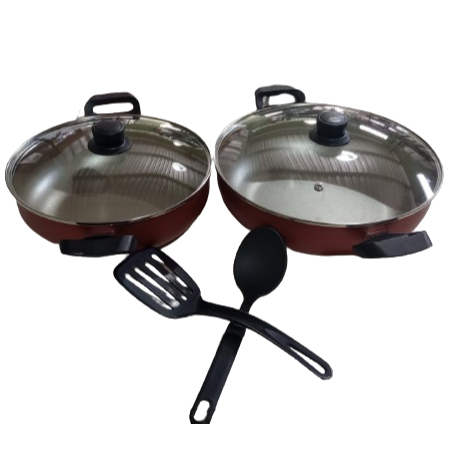 KIT DUAS FRIGIDEIRA WOK, 24 E UMA 28 COM ESPATULA E TAMPA DE VIDRO