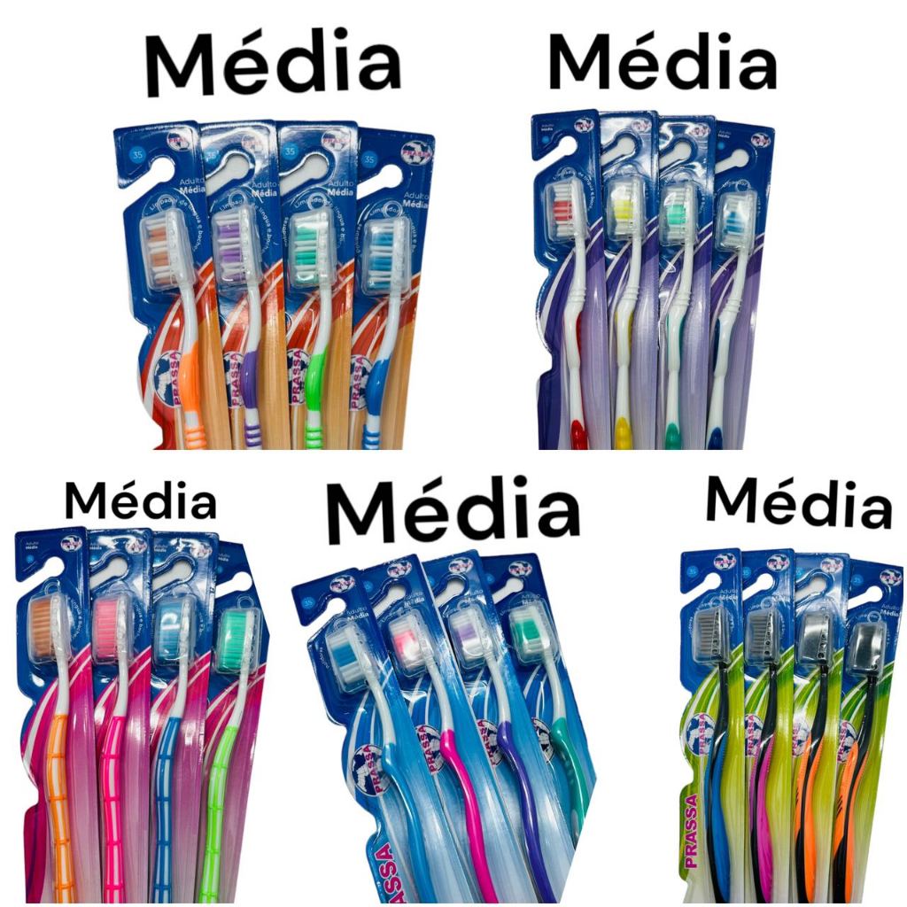 Kit Com 12 Escovas De Dente Macias Ou Médias Adulto Higiênie Bucal Diversas Cores E Modelos Dental