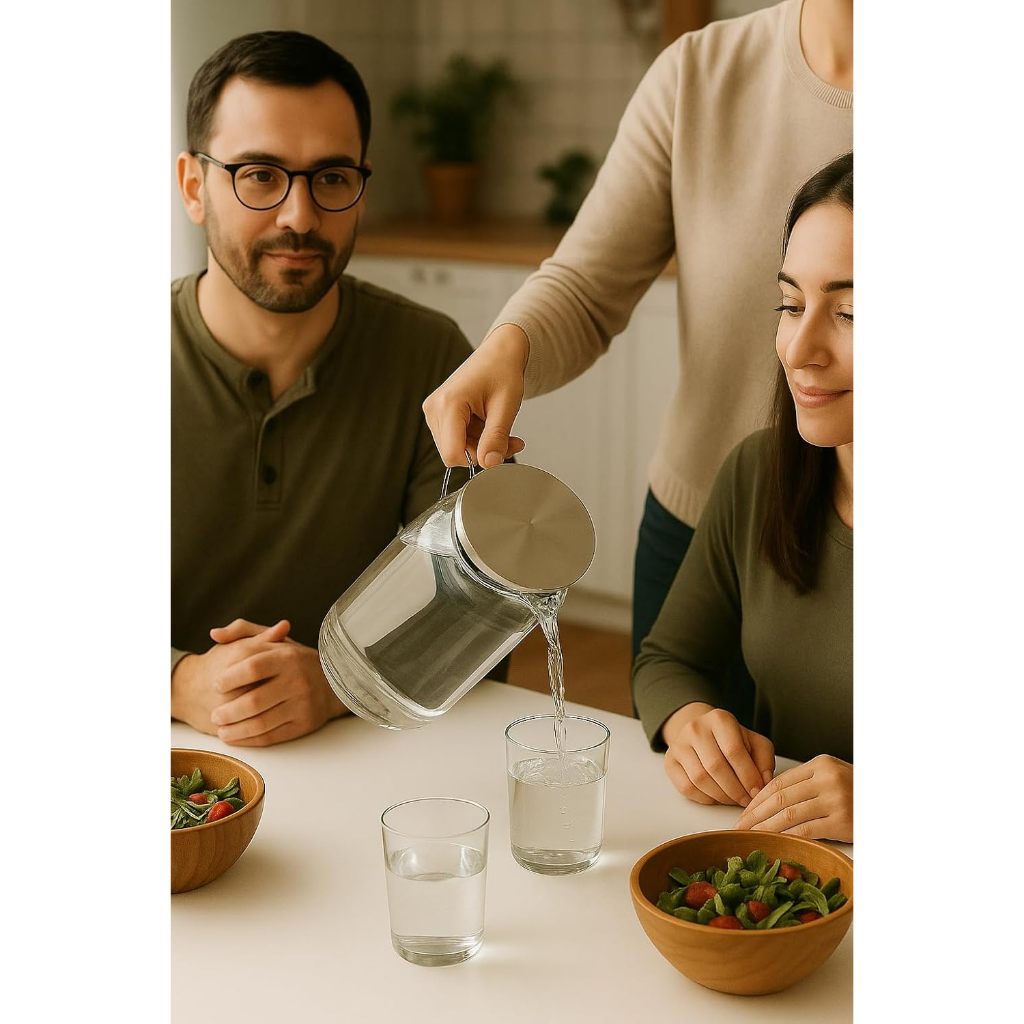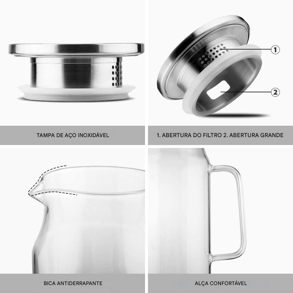 Jarra Vidro Tubo Borossilicato Com Tampa De Inox 1,8 Litros