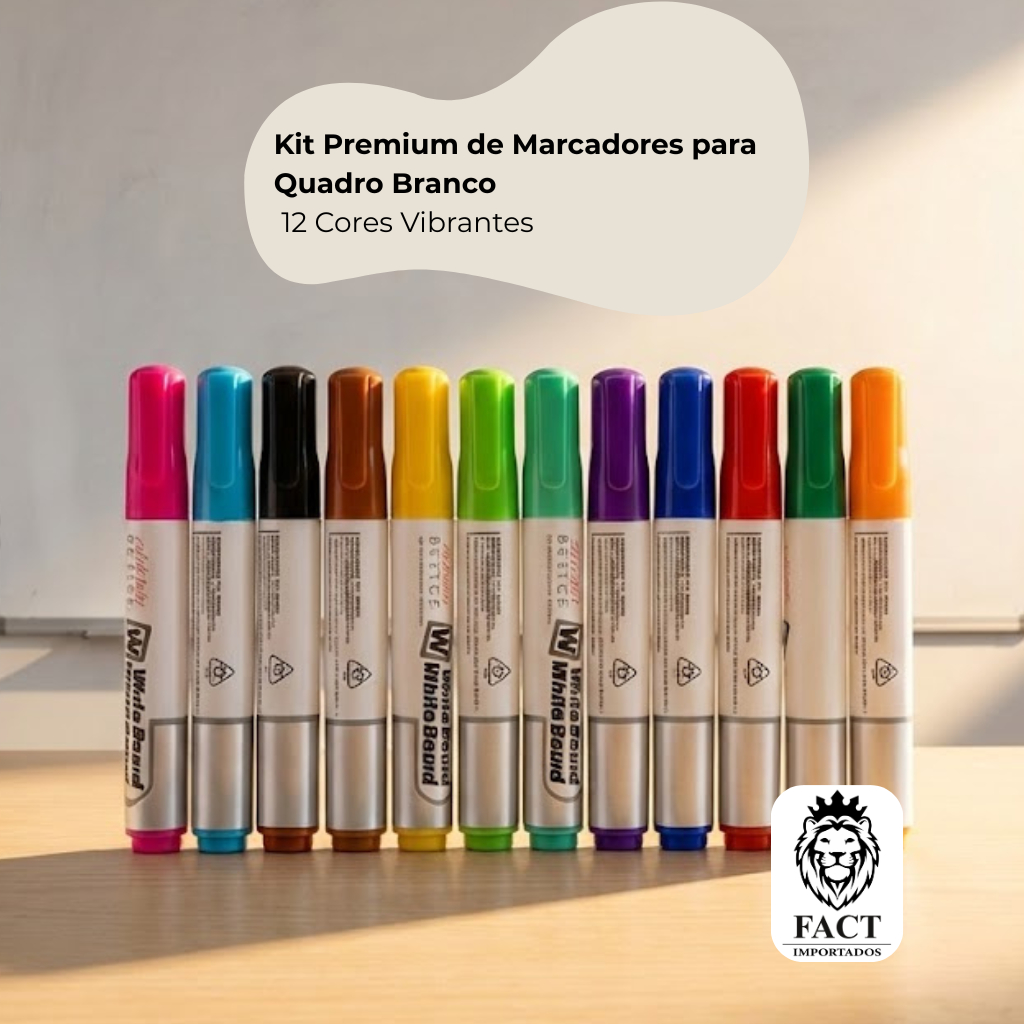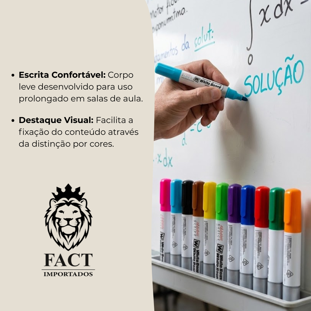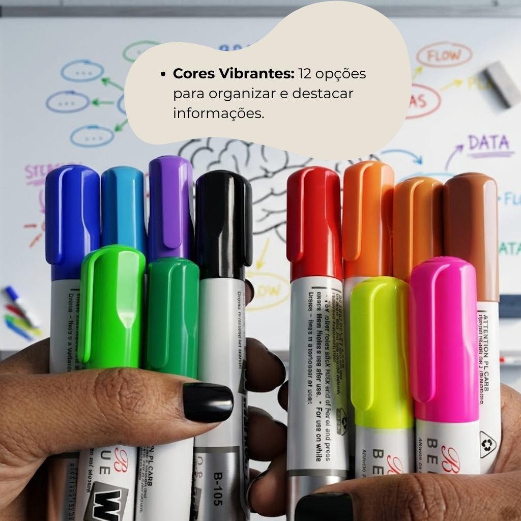 Marcador Quadro Branco Colorido Caneta Apagável 12 Unidades