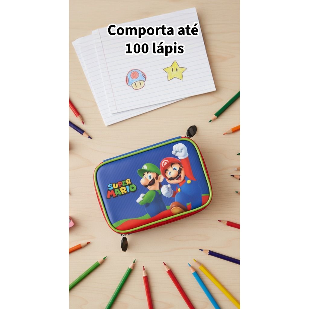 Estojo Bolsa Escolar Nintendo SUper Mario 2 divisórias Licenciado