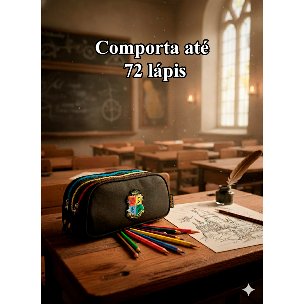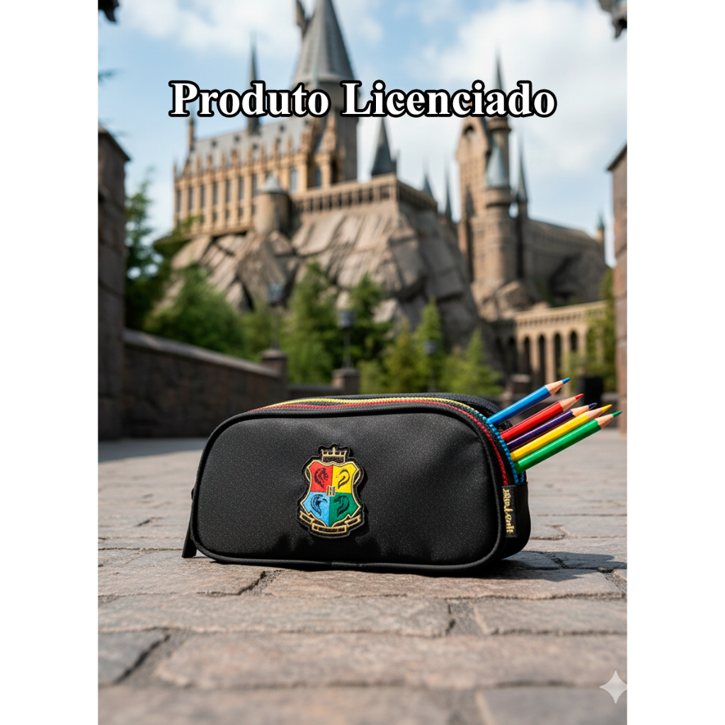 Estojo Escolar Harry Potter Hogwarts 3 divisórias Licenciado