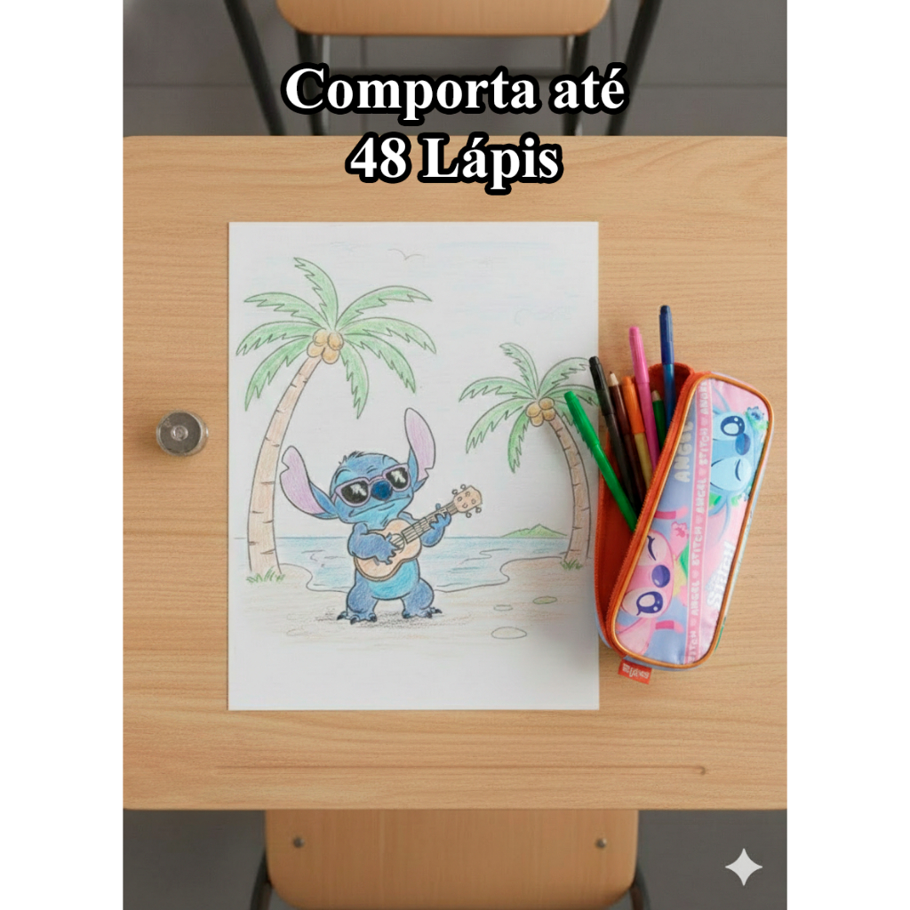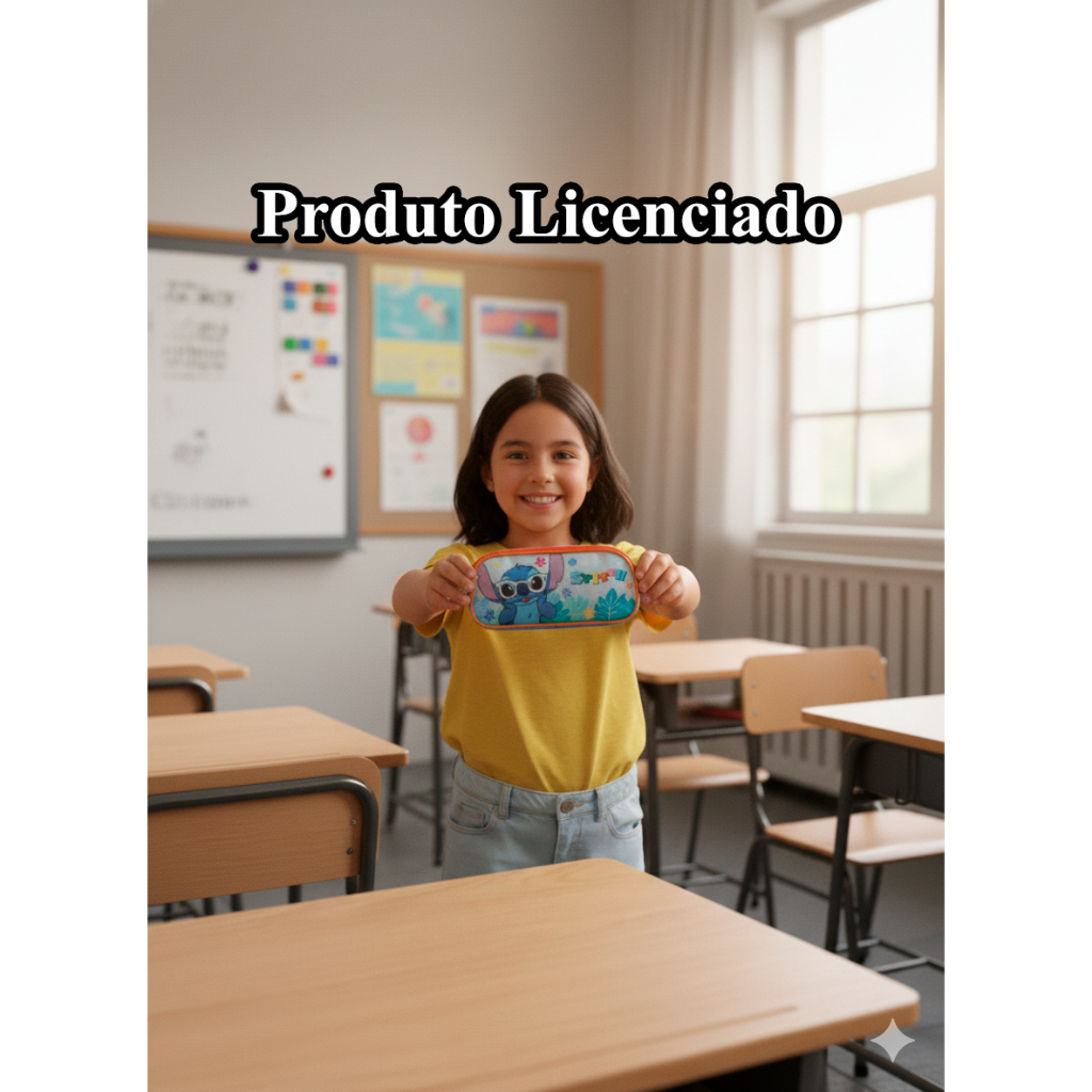 Estojo Escolar Disney Stitch 2 divisórias - Licenciado New