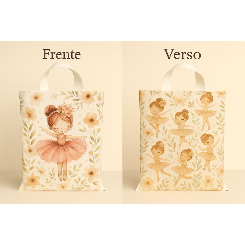 Sacola alça fita estampada Bailarina 29x45 com 25,50,75,100
