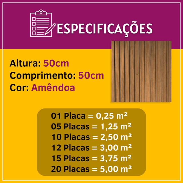 Kit 10 Placas Revestimento Ripado 50x50 Painel 3d Parede Alto Relevo