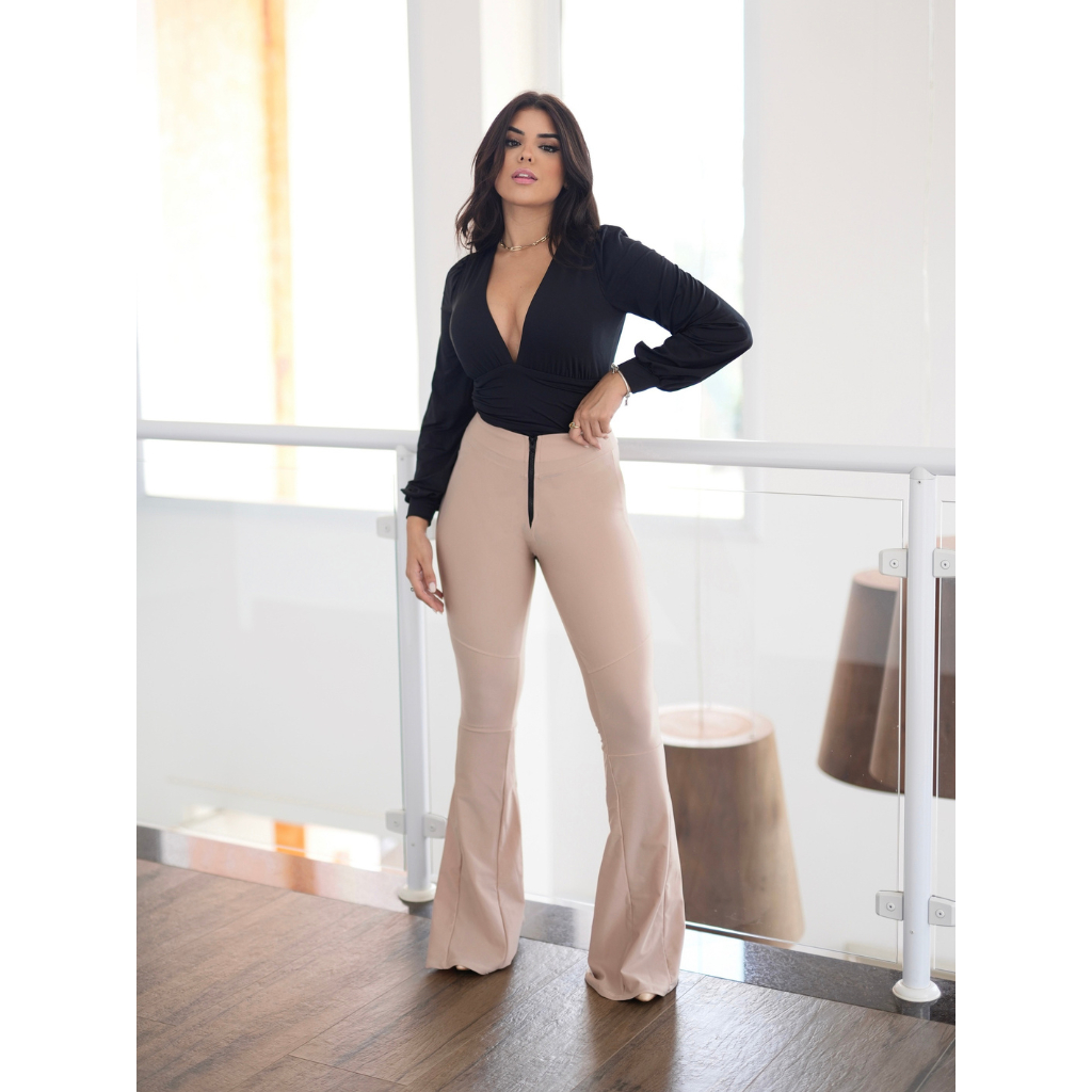 Calça Flare Tecido Cirrê Power Poliamida