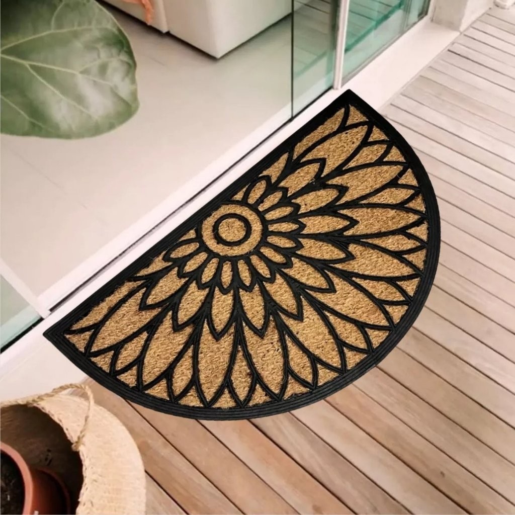 Tapete Porta Entrada Casa Capacho Fibra de Coco Flor de Lotus 45x75cm Kapazi